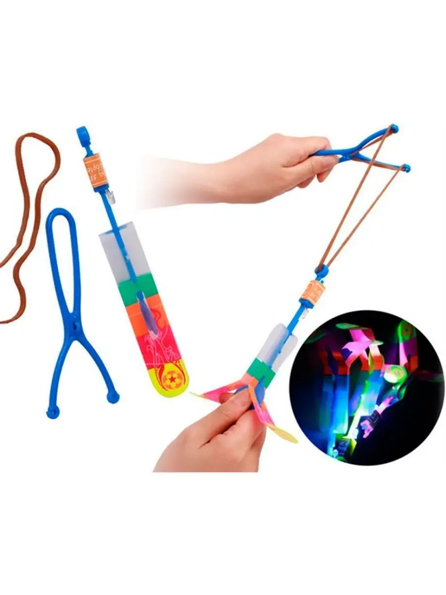 Вертолетик с рогаткой летающий, светящийся (3 шт)