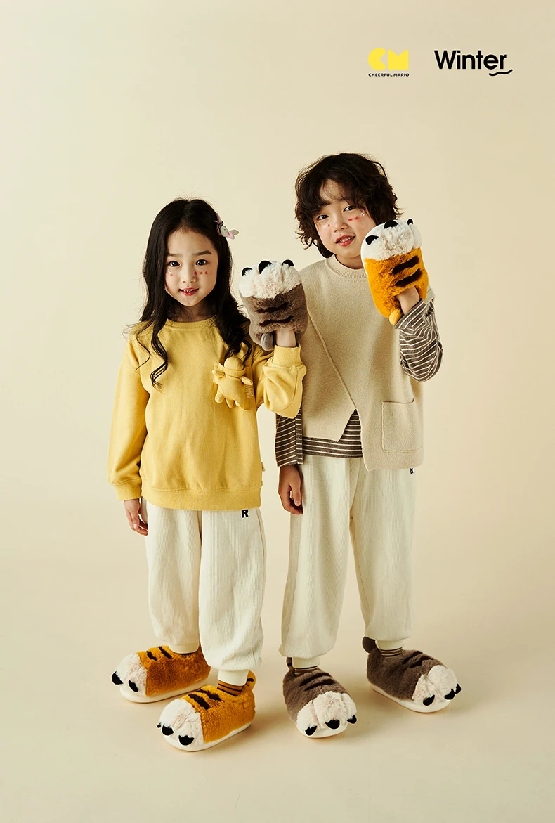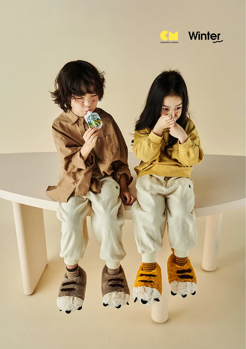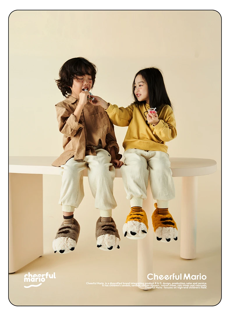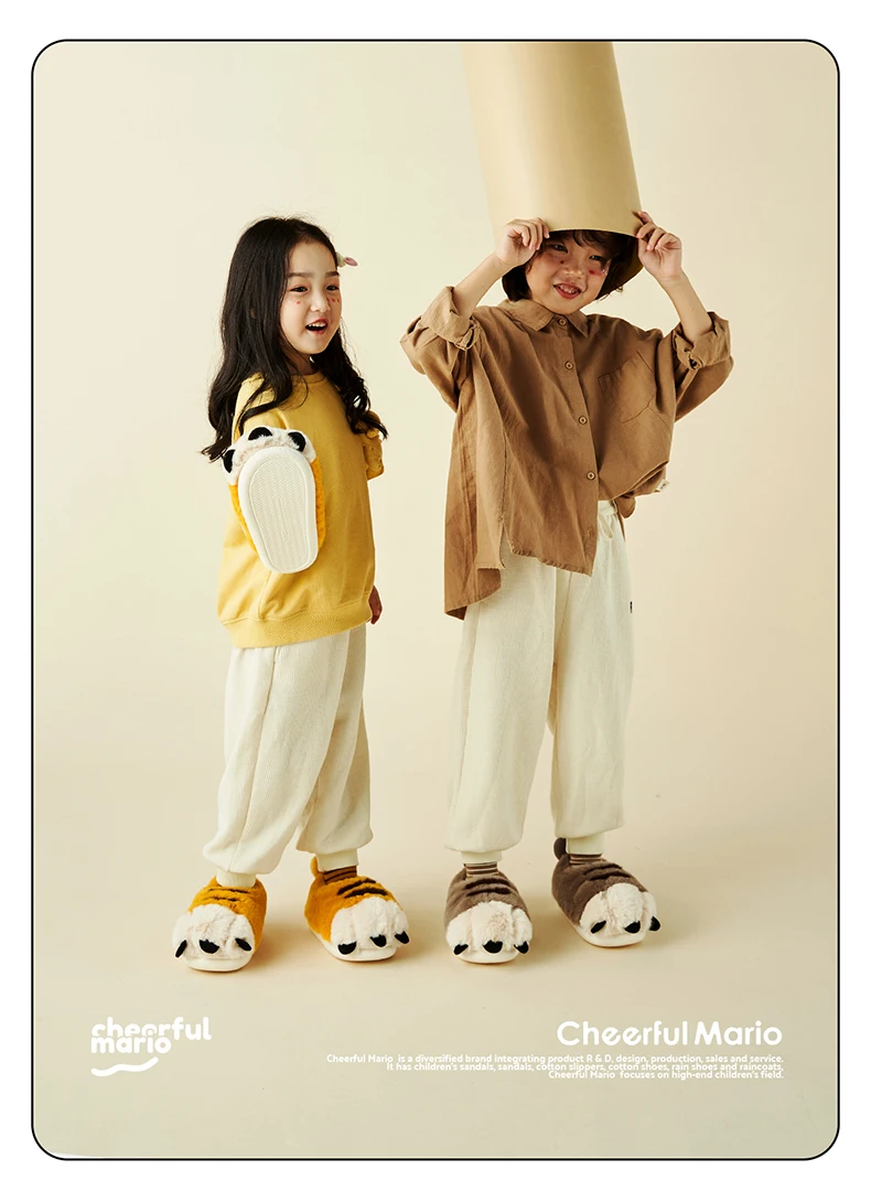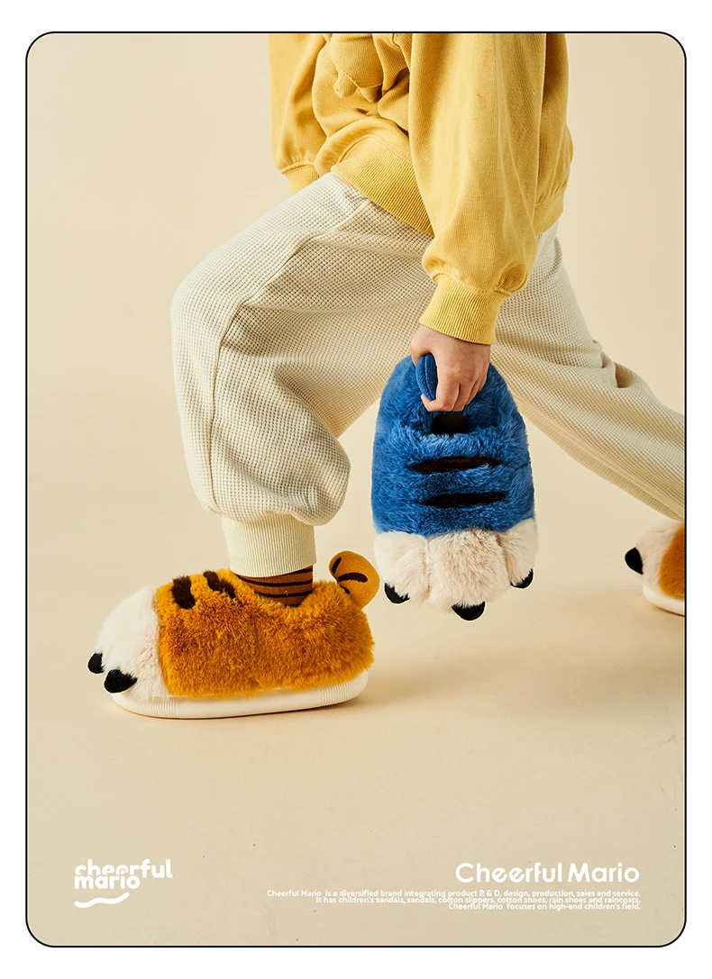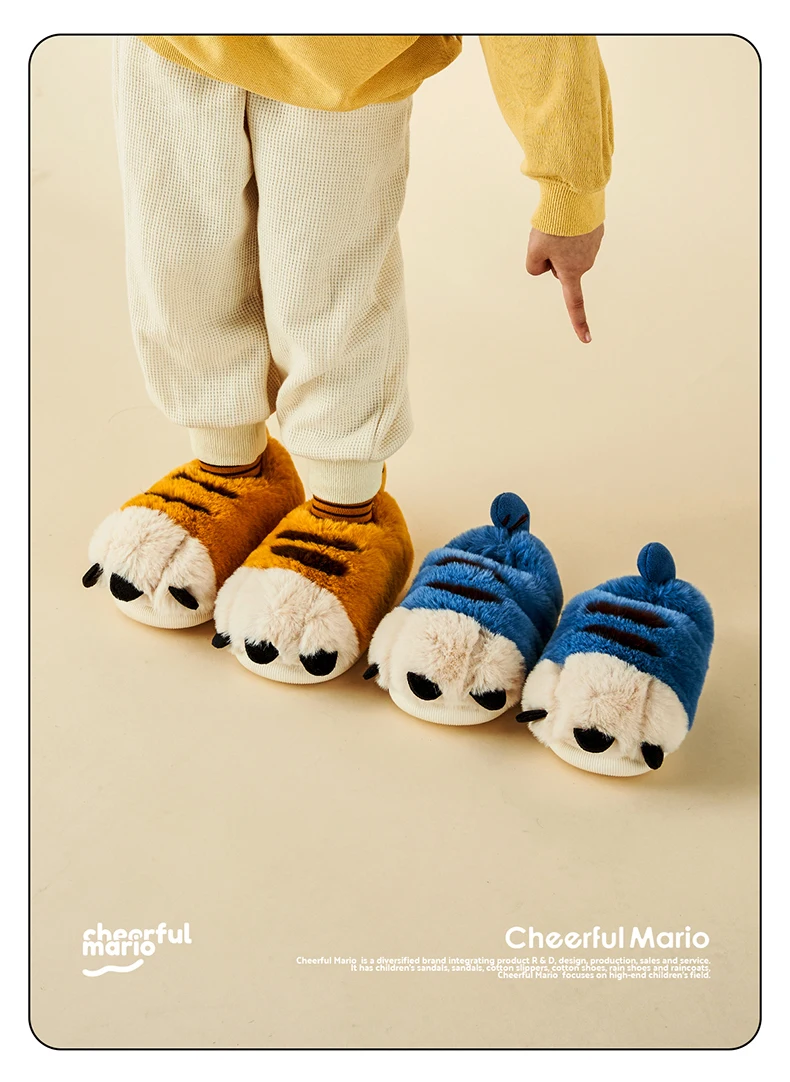 Веселые Марио новые стильные детские плюшевые теплые хлопковые тапочки Симпатичные Зимние сланцы для дома мягкая детская обувь