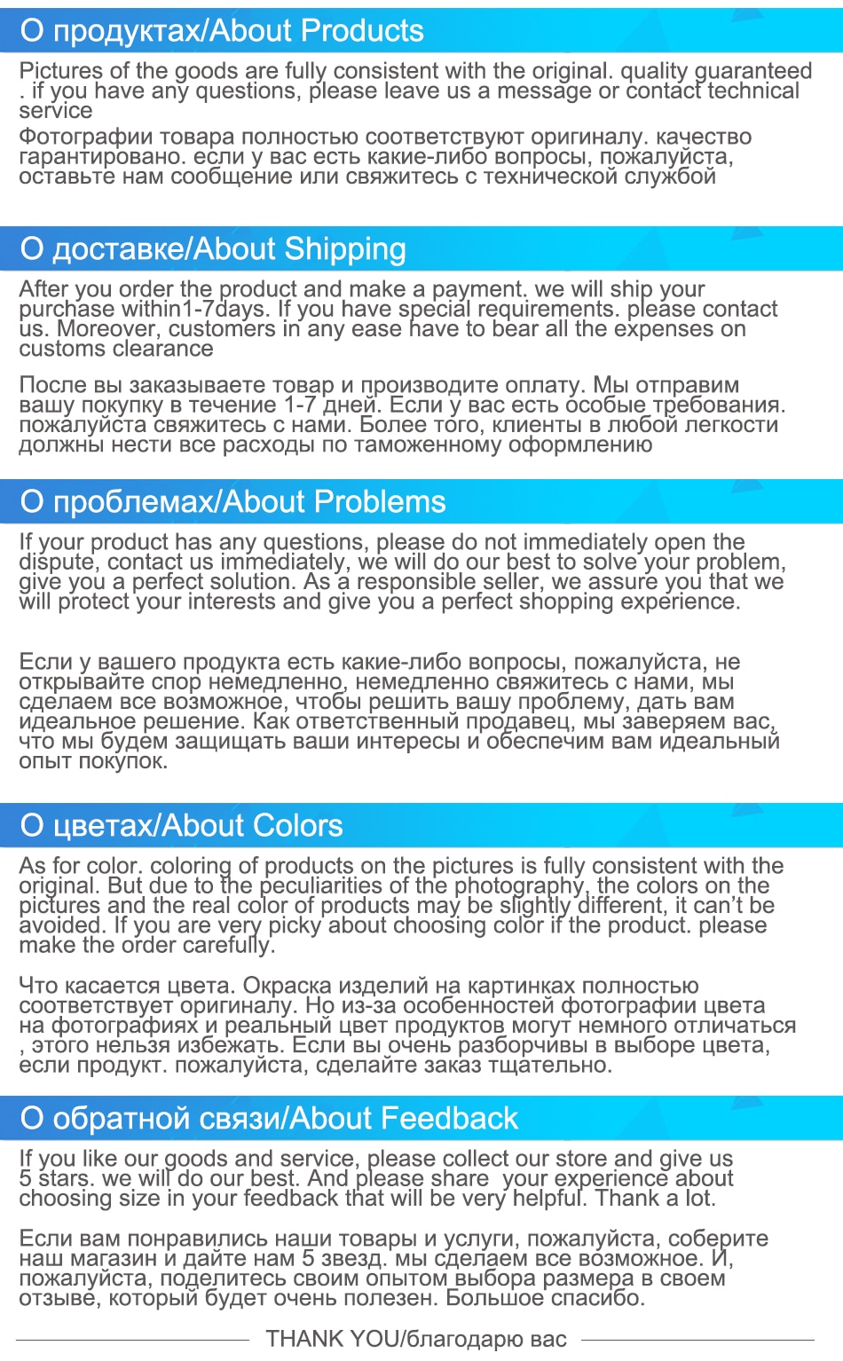 2. Из-за различий в мониторе и световом эффекте фактический цвет изделия может немного отличаться от цвета, показанного на фотографиях. Спасибо тебе!