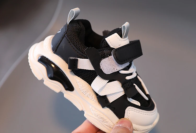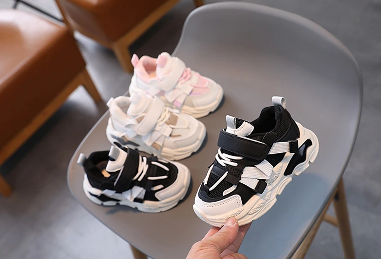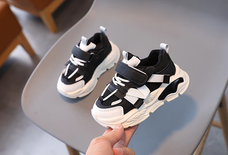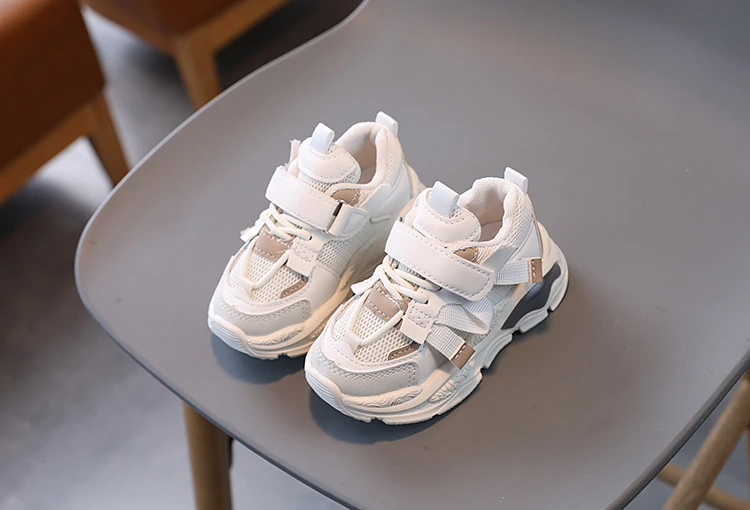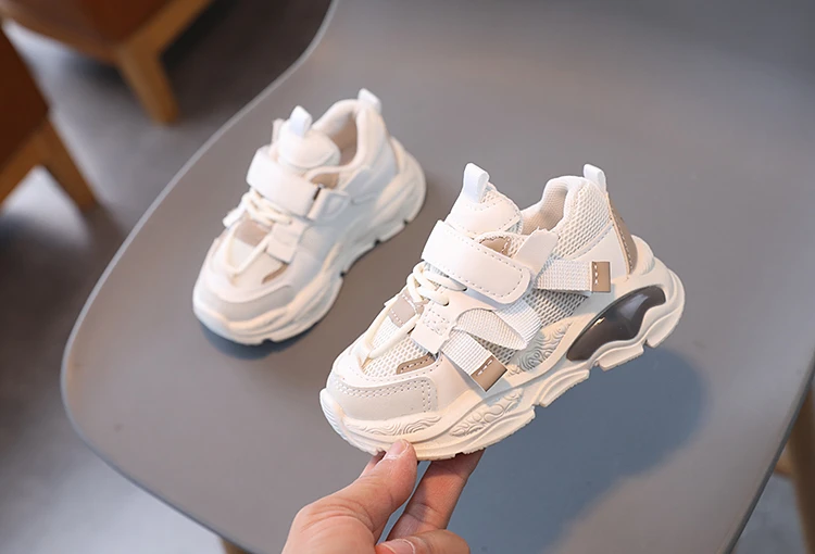 Весенне-осенние новые детские модные мягкие белые спортивные туфли для мальчиков студентов с крючком и петлей разноцветные сетчатые кроссовки для маленьких девочек