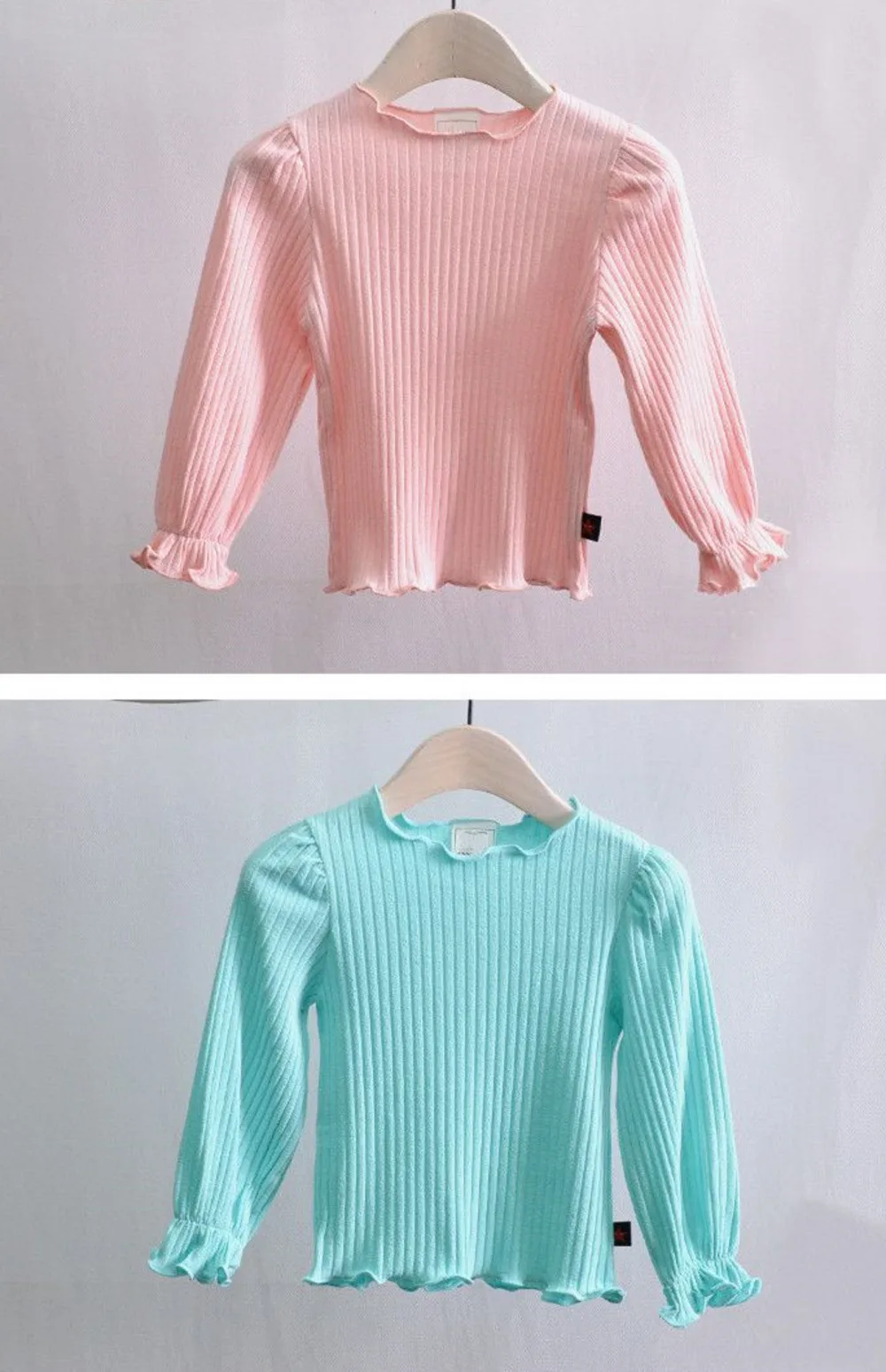 Весенне-осенняя одежда для девочек Basecoat, тонкие футболки для девочек, Детская футболка с длинным рукавом, детские футболки маленького и среднего размера с деревянными ушками
