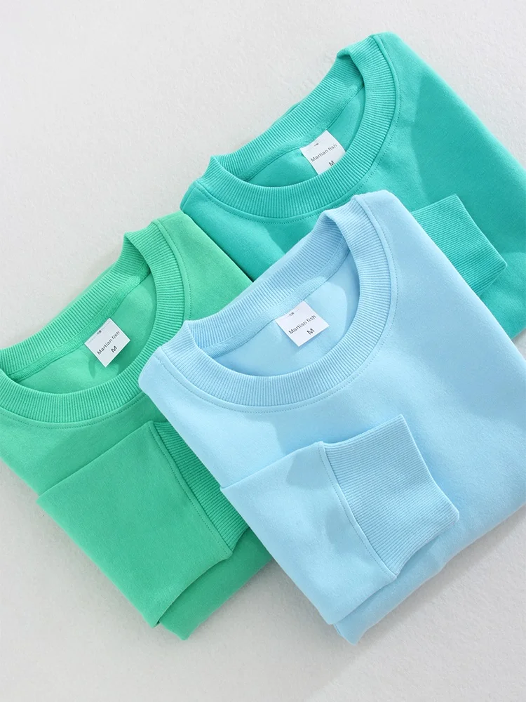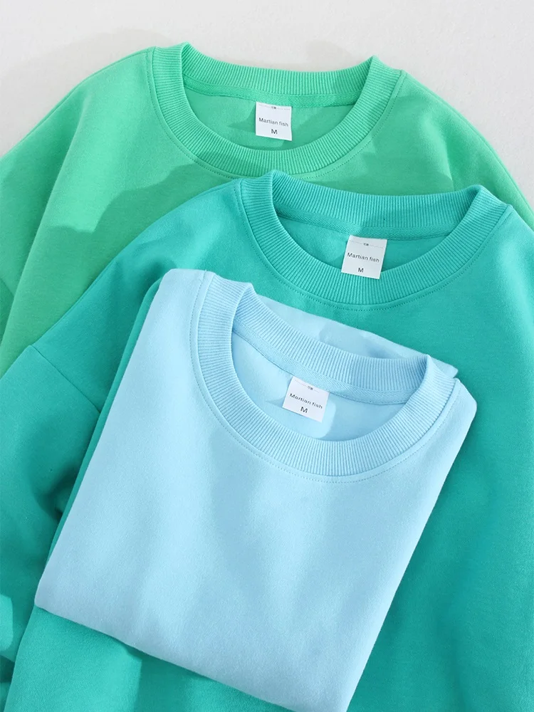 Весенний хлопковый пуловер, свитшоты оверсайз, женский свободный топ с круглым вырезом и длинным рукавом, однотонный зеленый Свитшот оверсайз для женщин 2023