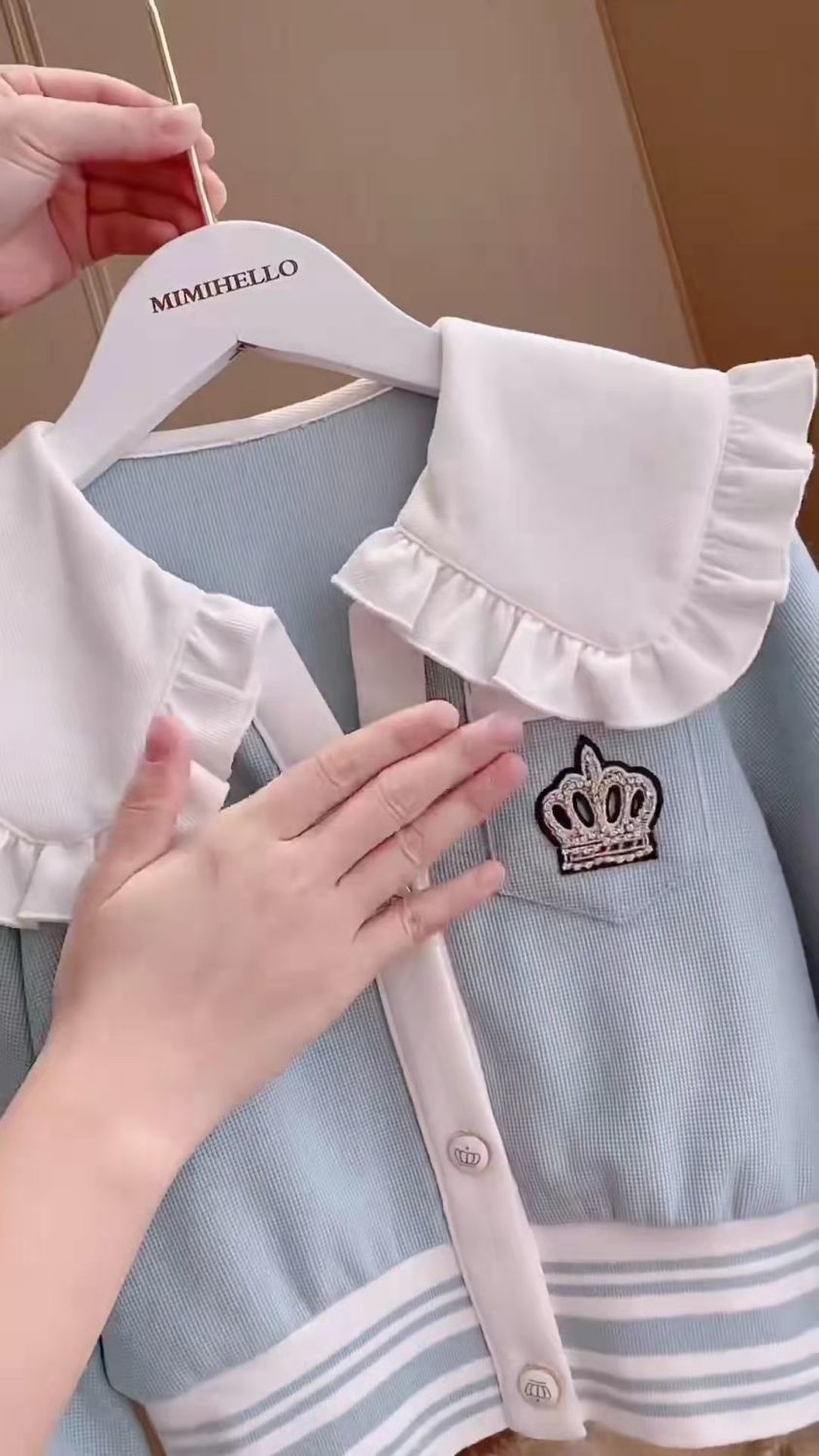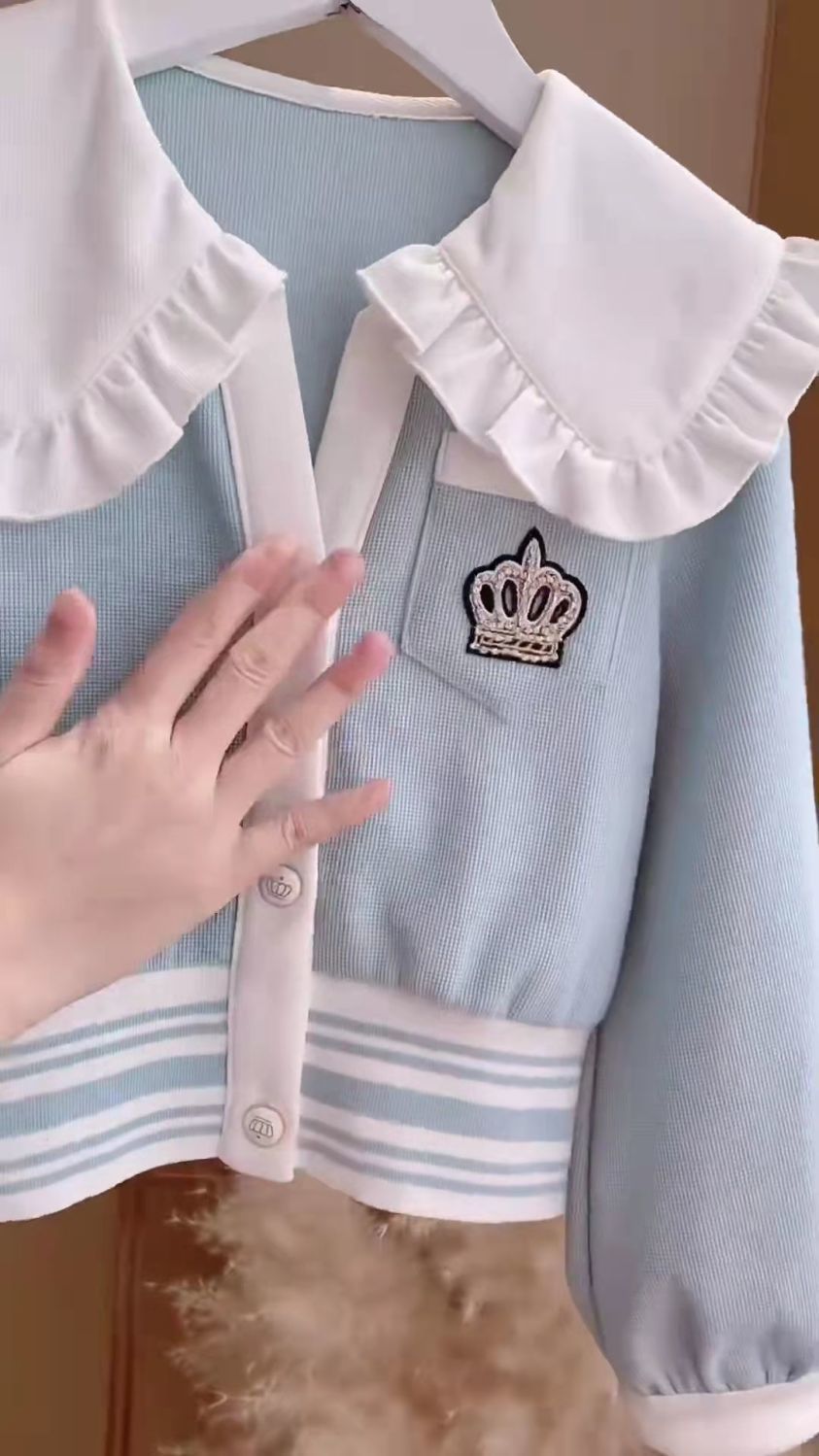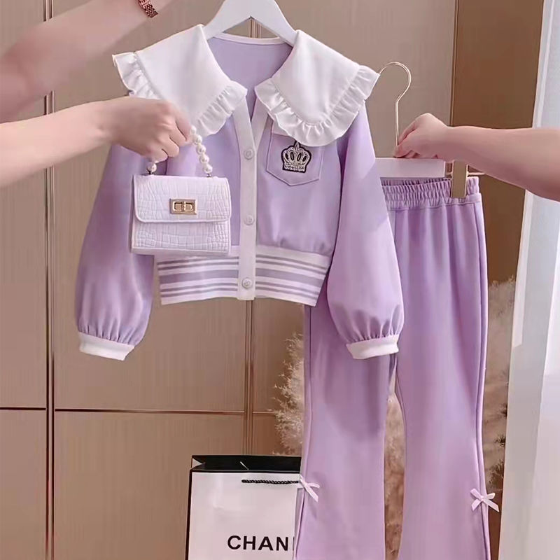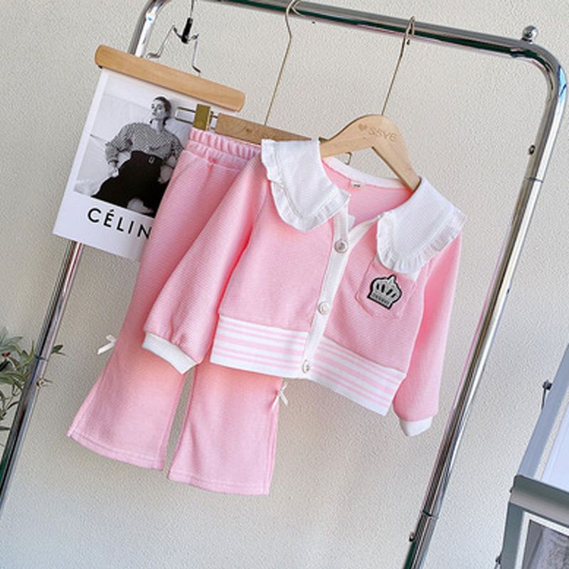Весенняя домашняя одежда для девочек, новая детская одежда, пальто с воротником для кукол + брюки, комплекты из двух предметов, модные спортивные костюмы для девочек для От 3 до 14 лет
