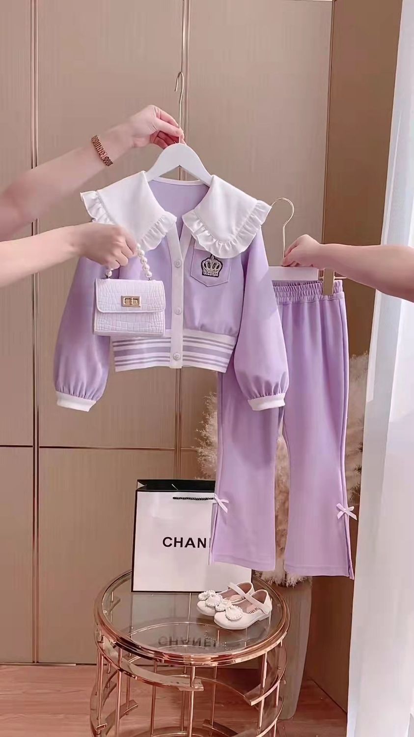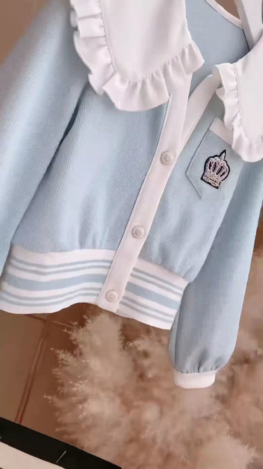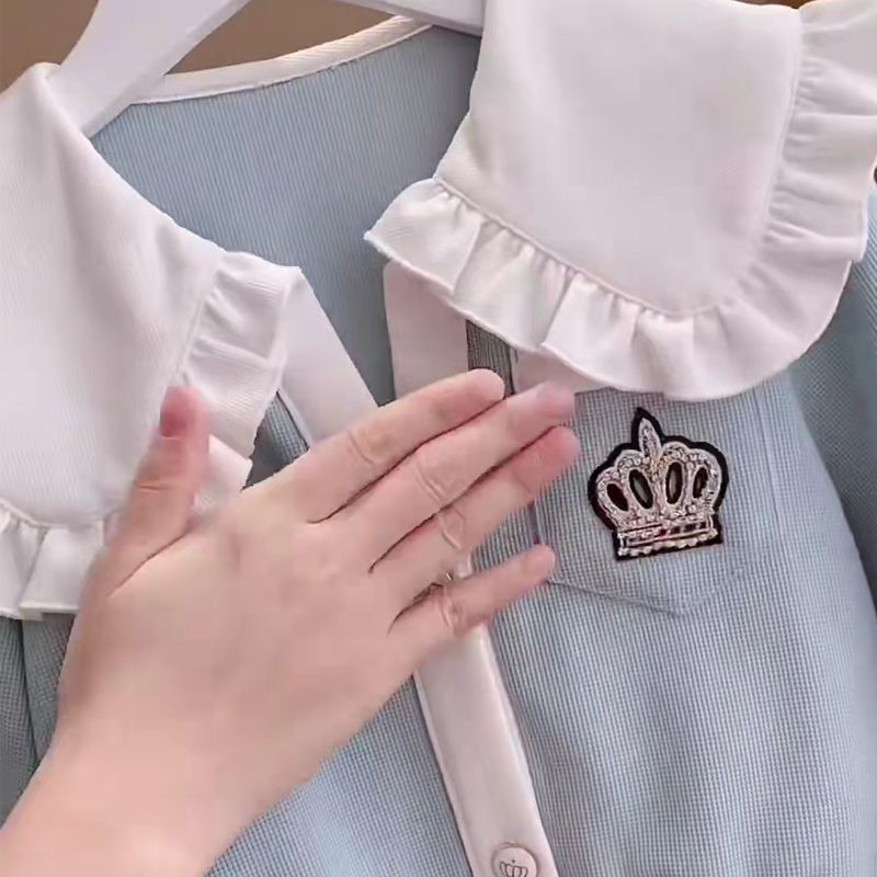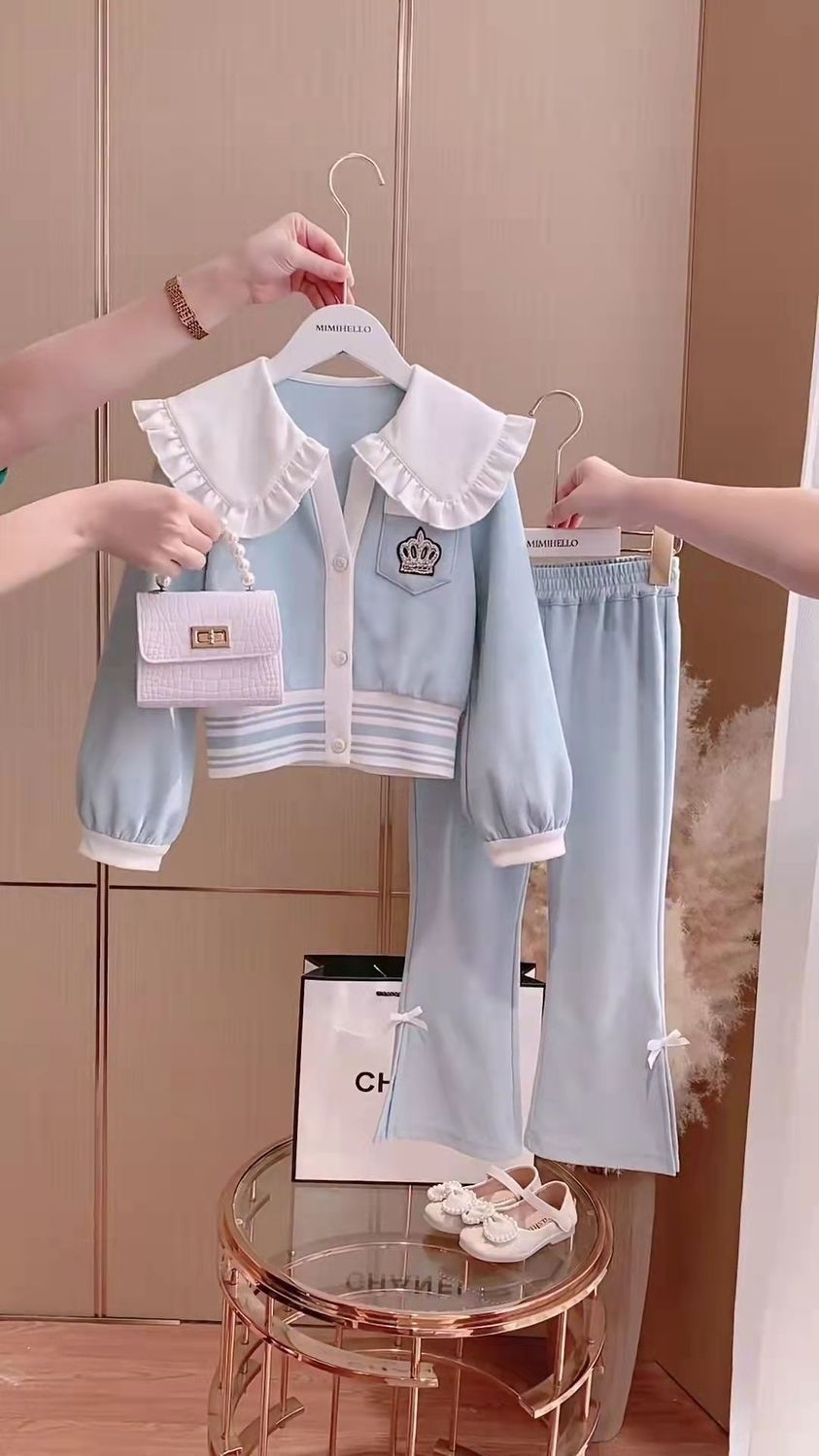 Весенняя домашняя одежда для девочек, новая детская одежда, пальто с воротником для кукол + брюки, комплекты из двух предметов, модные спортивные костюмы для девочек для От 3 до 14 лет