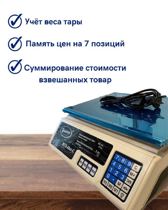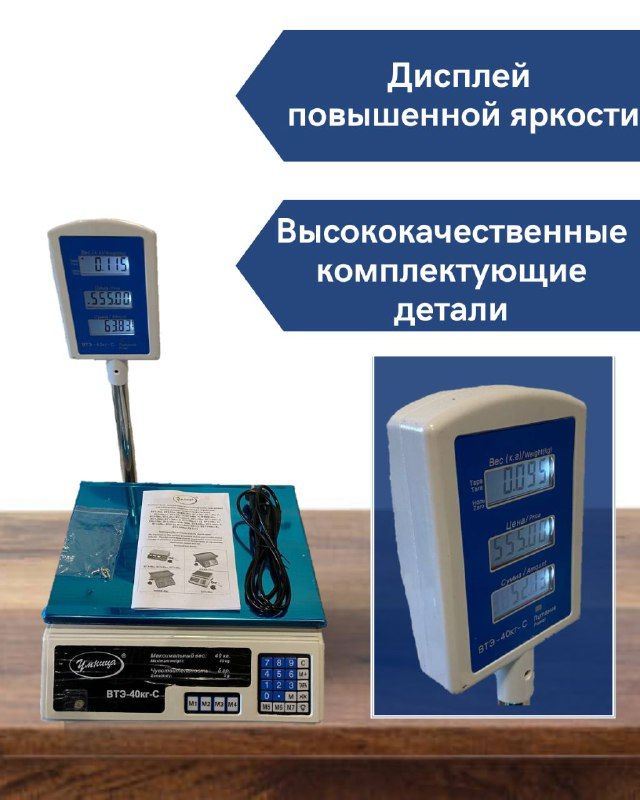 Весы "Умница" ВТЭ-40кг-С электронные для взвешивания товара (коммерческие), с двумя LCD дисплеями и расчетом стоимости покупки