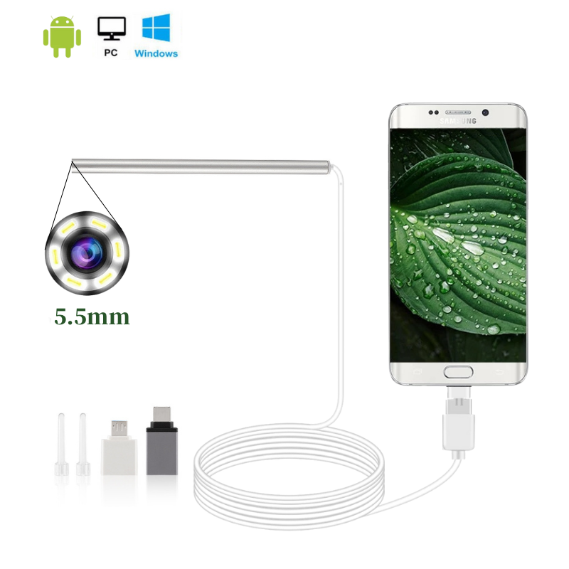 2. USB ENDOSCOPE BORESCOPE: он сочетает в себе 3 штекера для Type-C, Android Micro USB и USB-порт компьютера, которые позволяют ему хорошо работать со смартфоном Android 4,2 + с функцией OTG и UVC и смартфоном/планшетом Android с портом Micro USB, а также с Windows XP/Vista/ 7/8/10/MAC ПК или ноутбуки с портом USB. Нет необходимости в дополнительном кабеле-преобразовителе, Гибкое использование для различных устройств.