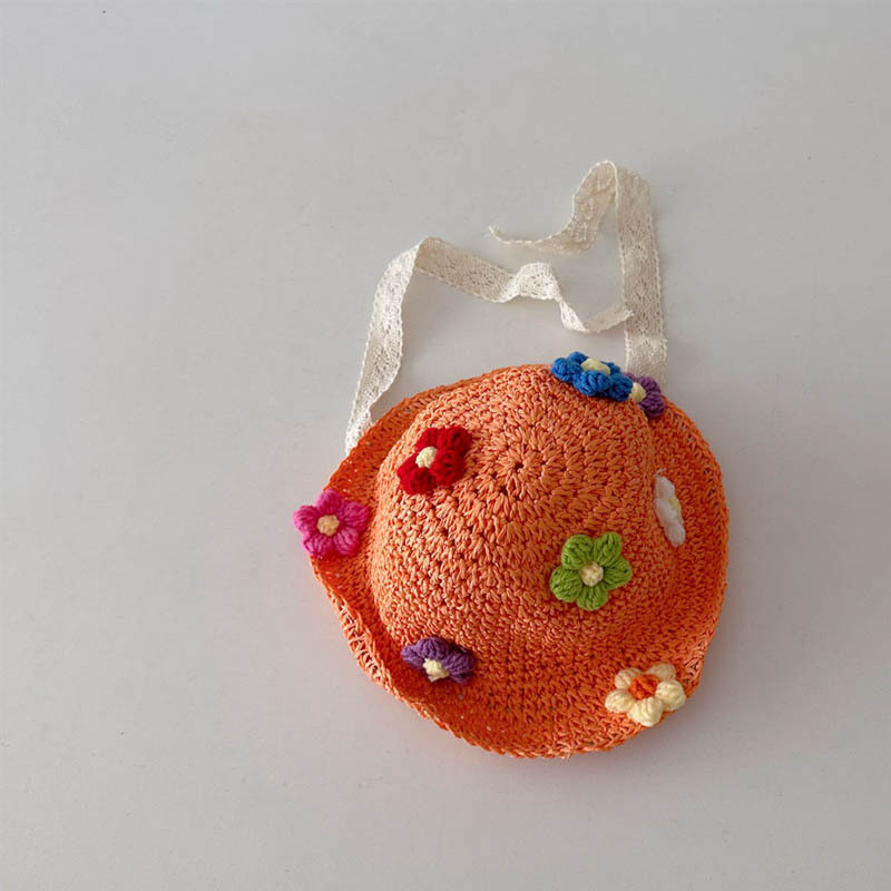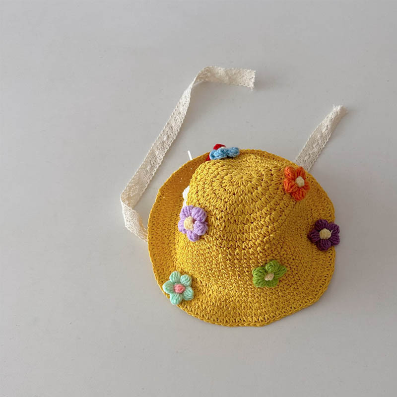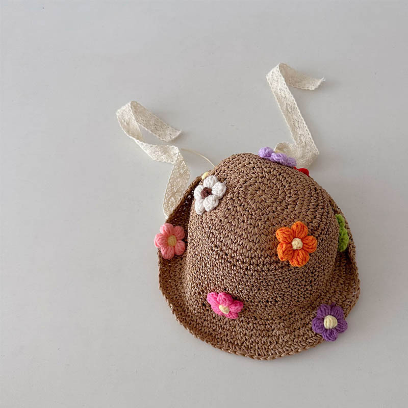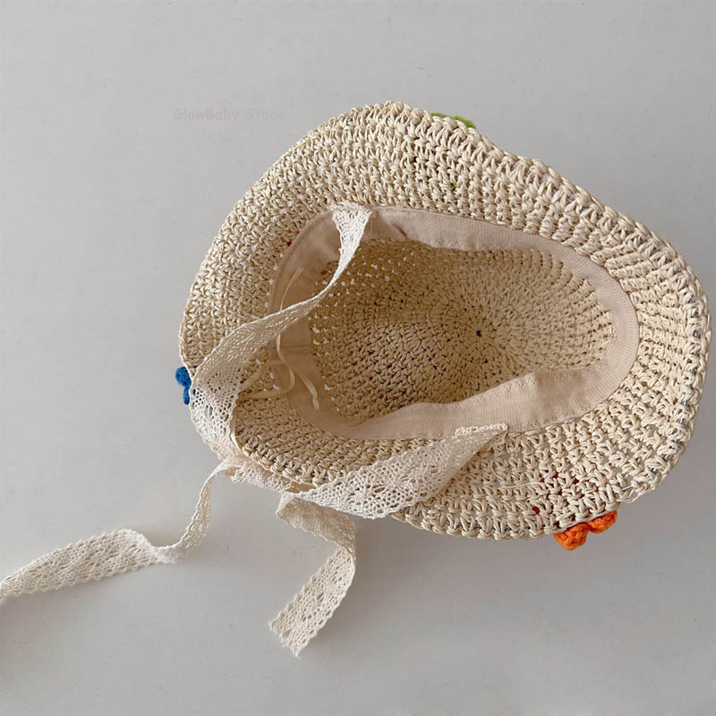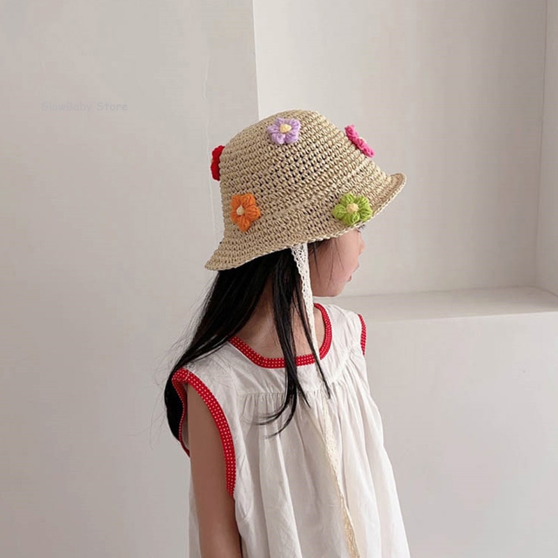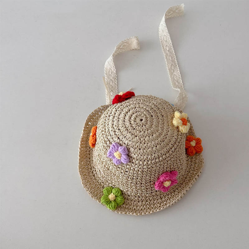Ветрозащитная шляпа для девочек, Соломенная Панама от солнца с кружевной лентой и цветами, в стиле принцессы, весна-осень