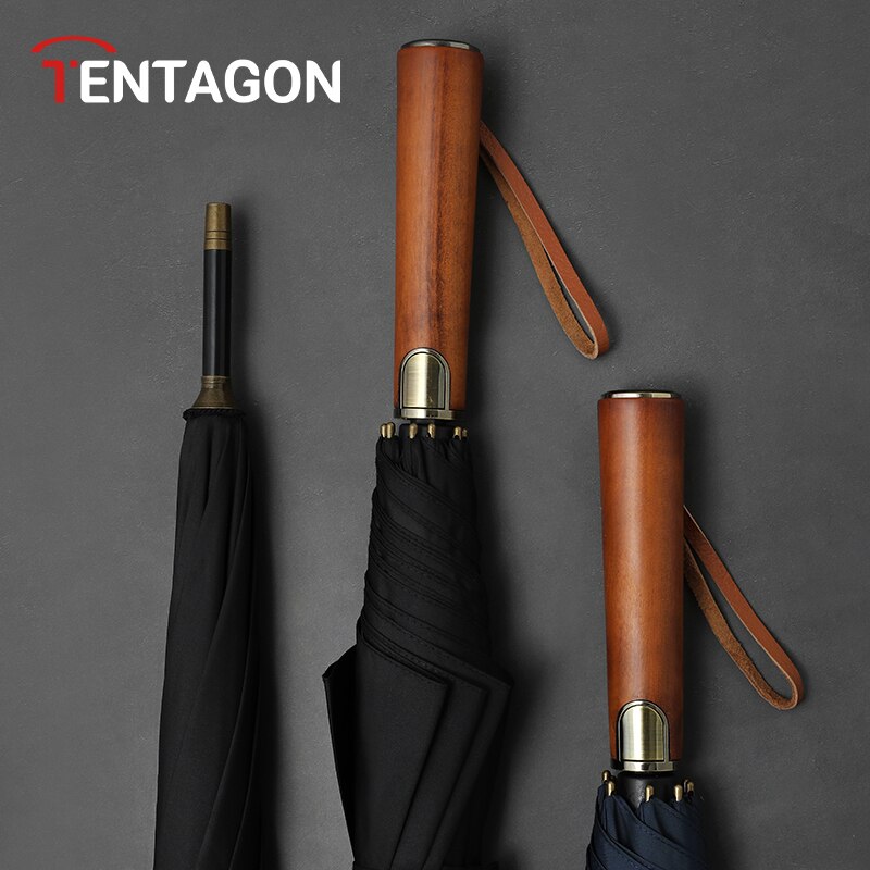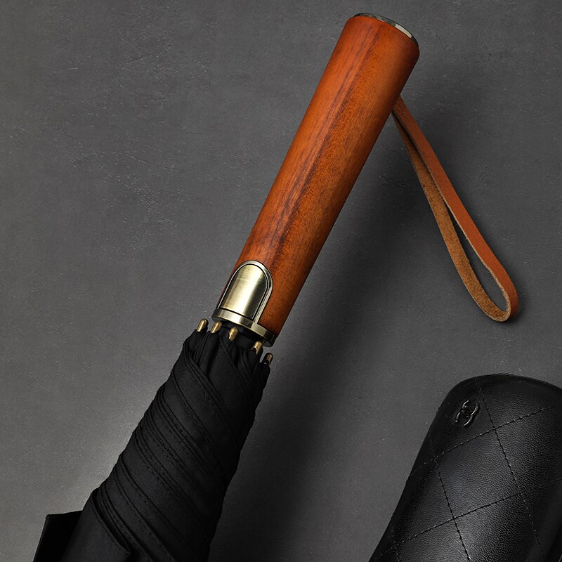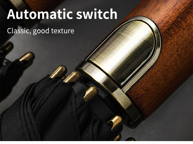 Бизнес Длинная ручка автоматический зонт с деревянной ручкой