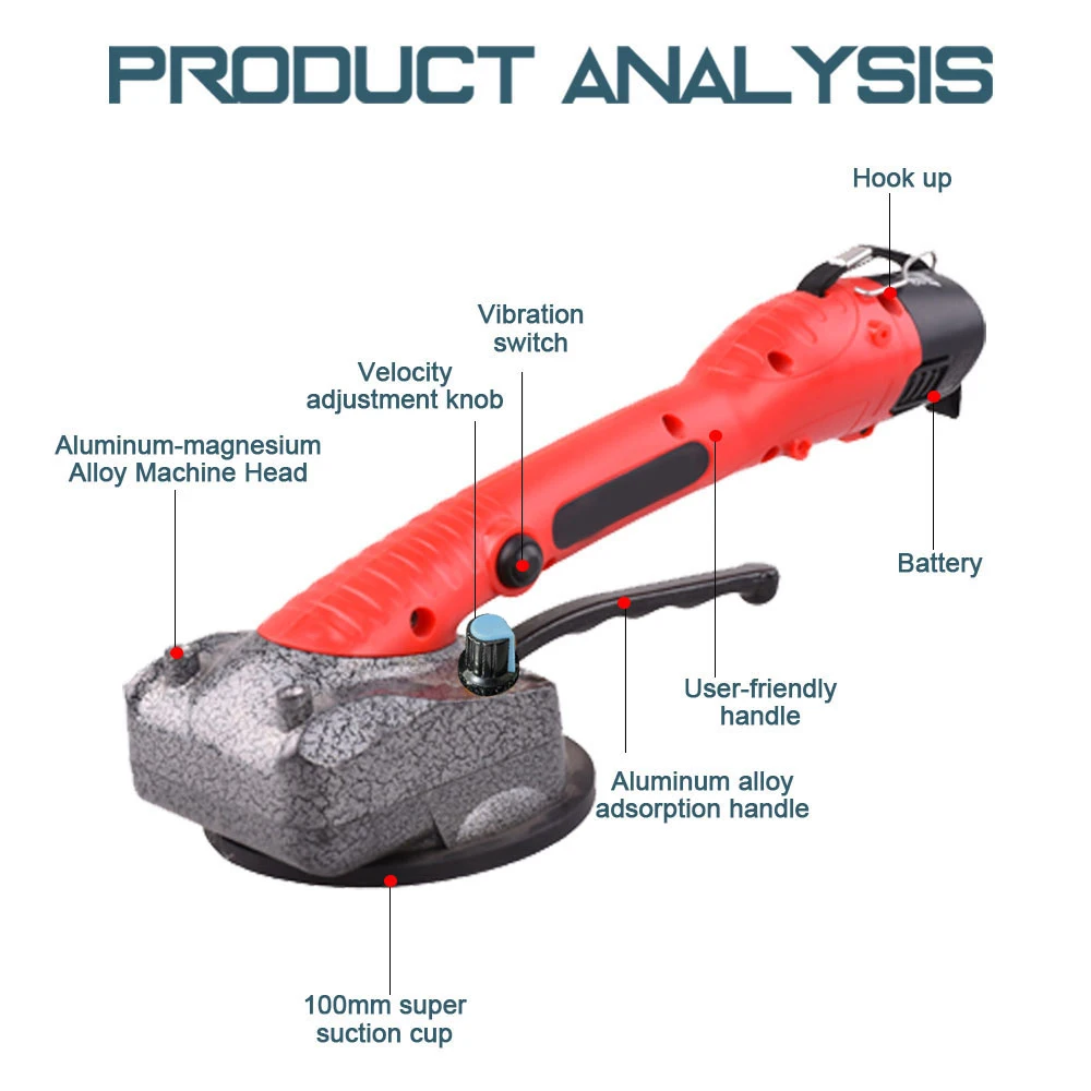 Это своего рода качественная машина для плитки с большой присоской 100*100 мм, поддерживающая работу одной рукой, с адсорбционной способностью 45 кг. 10 регулируемых передач частот, вы можете легко отрегулировать их с помощью ручки вращения. Легко исправить положение плитки, просто плотно нажмите на ручку и оттяните плитку назад. Широкое Применение: подходит для укладки плитки 0,6-1,2 м.