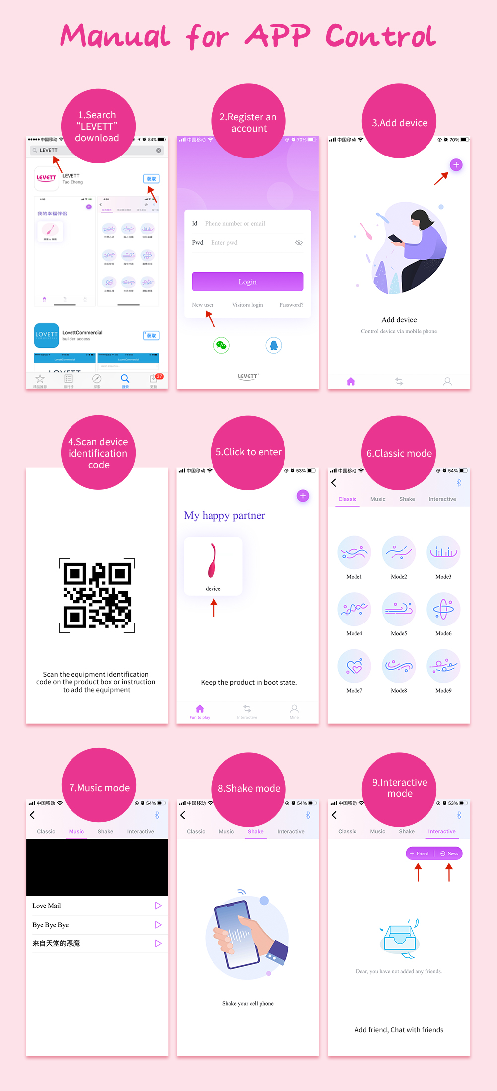 ④ Интерактивный режим: добавляйте друзей, чтобы управлять вибраторами друг друга и совершать видеозвонки. Сделать больше удовольствия!