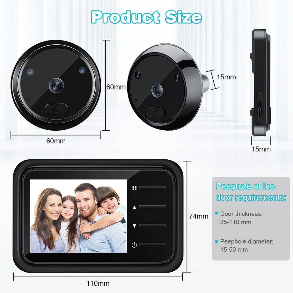 Видеглазок Camluxy с камерой 2,4 дюйма, ИК-подсветкой и функцией ночного видения