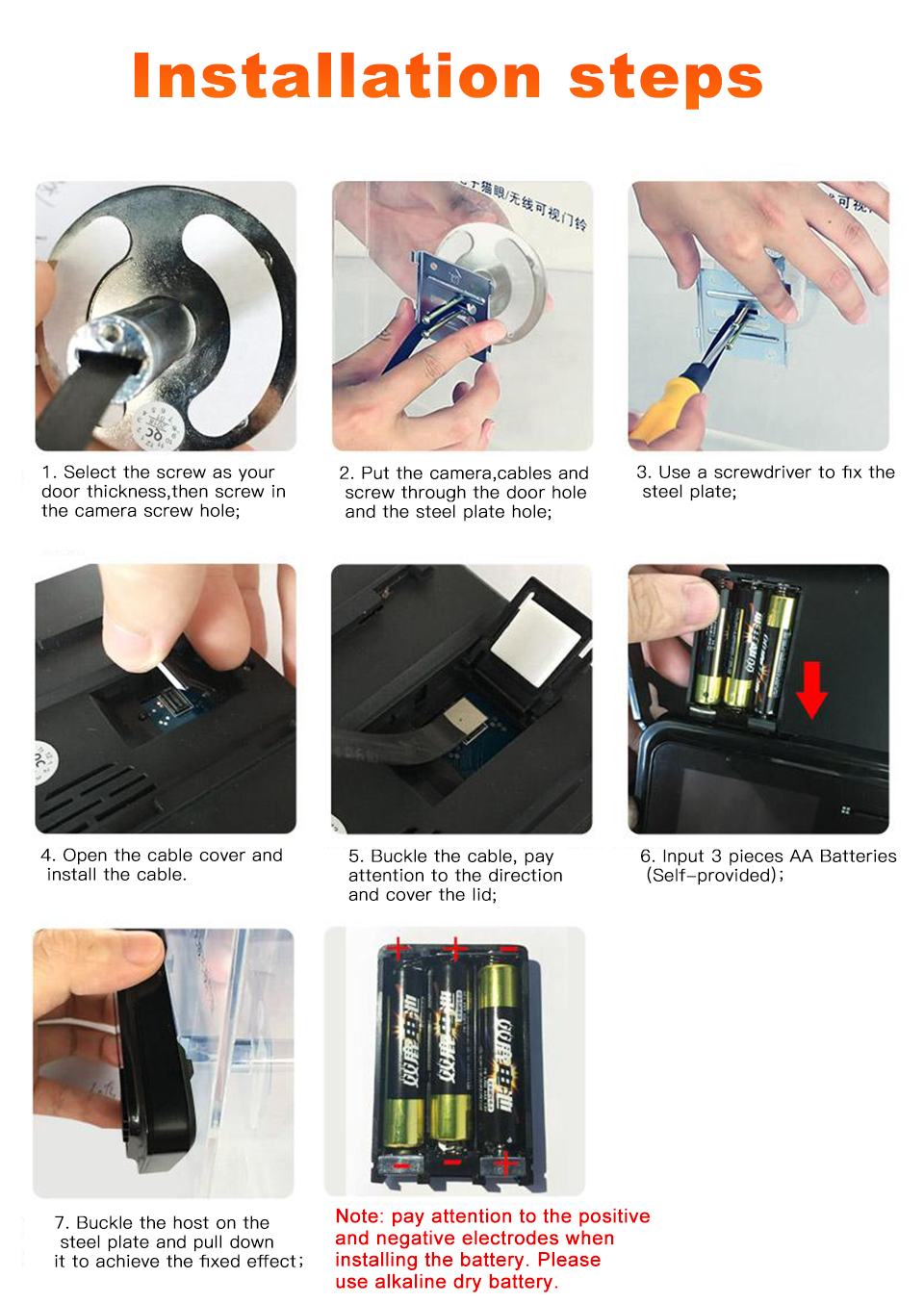 Камера дверного звонка поддерживает источник питания от сухой батареи, вы можете заменить его более удобно. Обратите внимание, что батареи не были включены в комплект из-за ограничений на доставку.