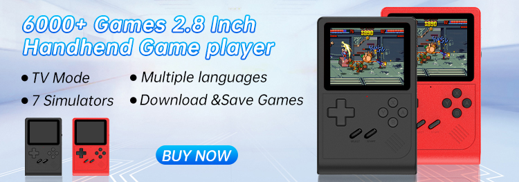 На этой консоли предустановлено 6000 игр, с 7 эмуляторами и 7 языками, экраном 3.0HD, гладким экраном высокой четкости с высокоточным джойстиком, поддержкой загрузки и сохранения игр. Кнопка «RL'button» поможет вам Переключить функции «История», «Поиск», «Любимая система» и симуляторы. Он также поддерживает отображение клавиш. Вы можете наслаждаться временем в режиме ТВ с друзьями.