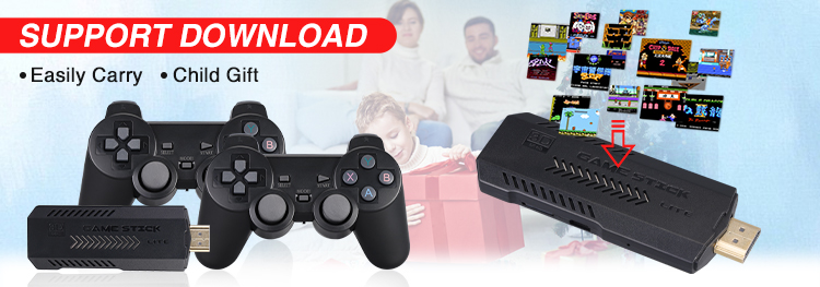 Оснащен двумя беспроводными игровыми контроллерами 2,4G. Поддержка до 4 игроков одновременно, вы можете удаленно управлять и наслаждаться игрой на диване с семьей или друзьями.