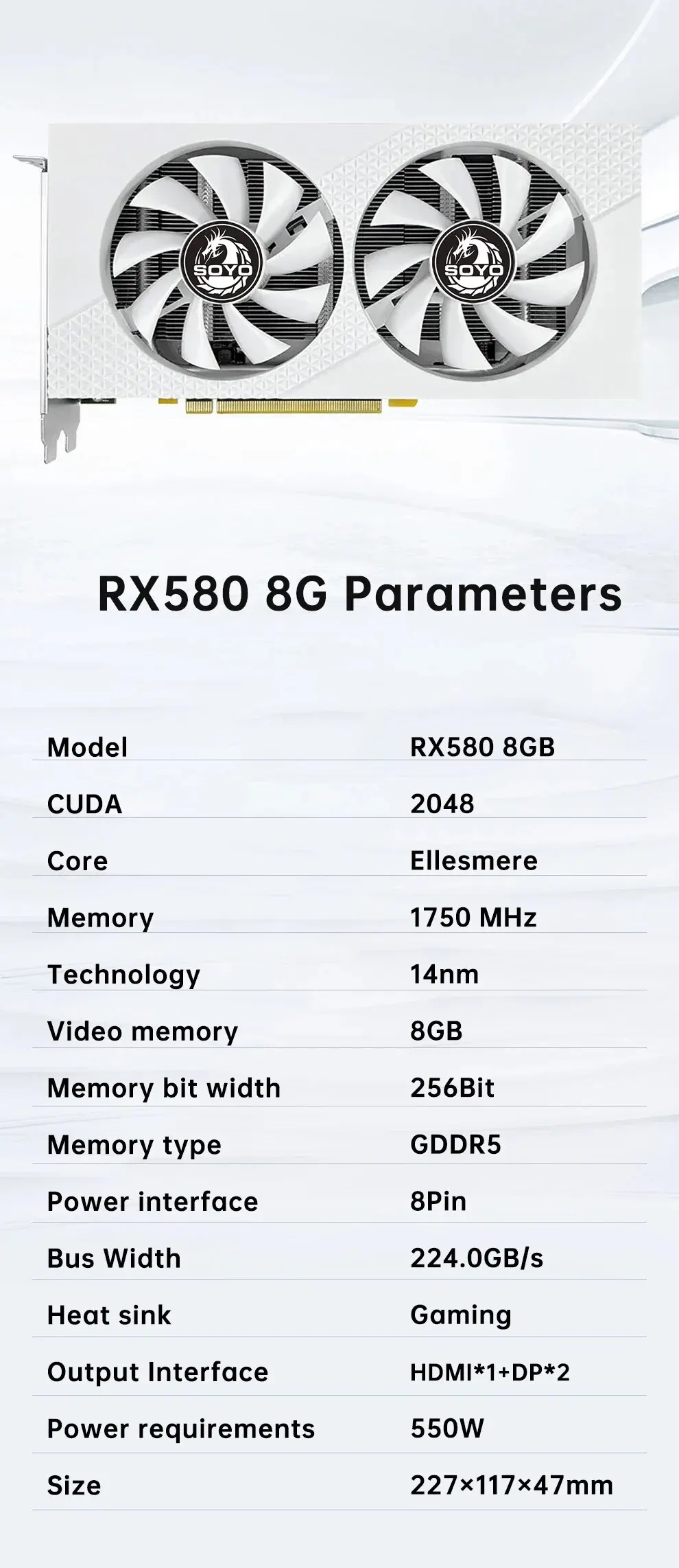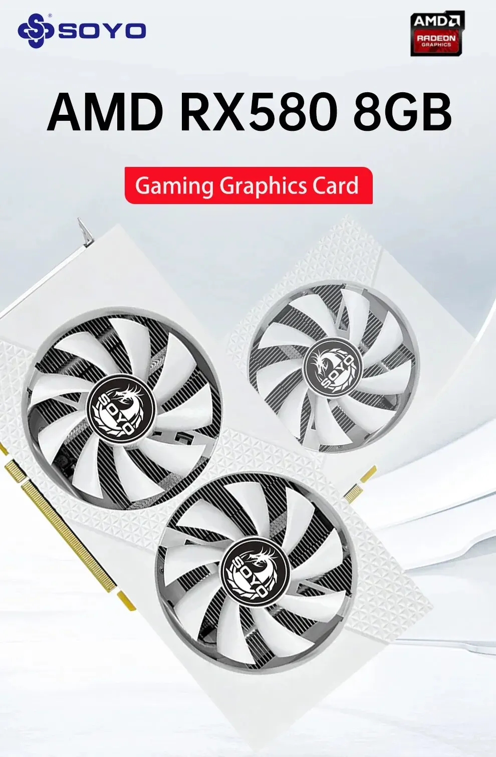 Видеокарта SOYO AMD Radeon RX580, 8 ГБ, GDDR5, PCIE3.0x16 HDMI DP * 2
