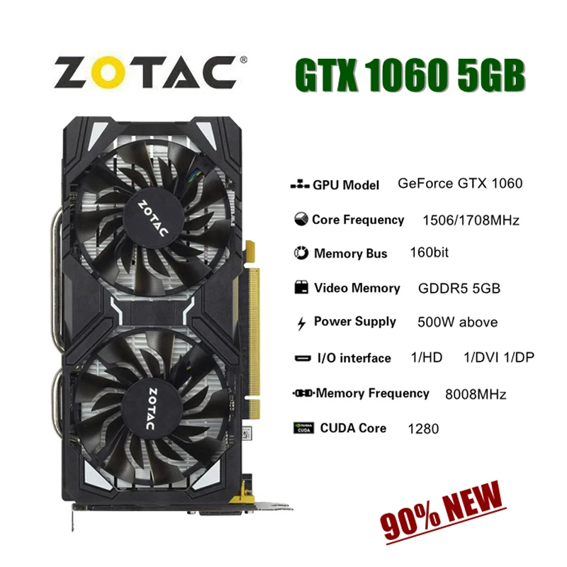 Подержанная игровая графическая карта ZOTAC GTX 1060 3 ГБ 5 ГБ 6 ГБ GTX1060 GDDR5 192-битные видеокарты GPU