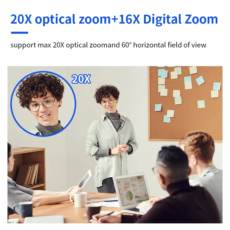 Оптический объектив 1080P, поддержка максимального оптического зума 20 × и поля зрения 60 ° по горизонтали, поддержка 16-кратного цифрового зума.