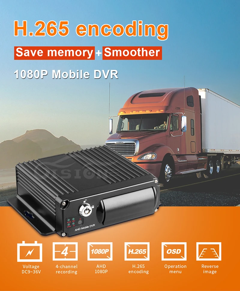 H.265 AHD 1080P 4-канальный автомобильный видеорегистратор