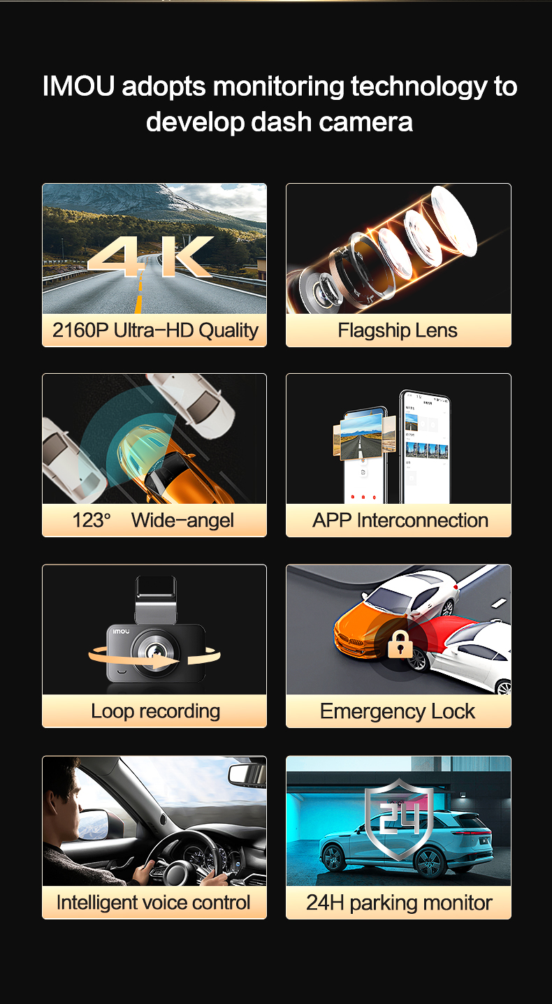 Видеорегистратор IMOU S800, 4K, Wi-Fi, 128 ГГц, с G-датчиком и голосовым управлением