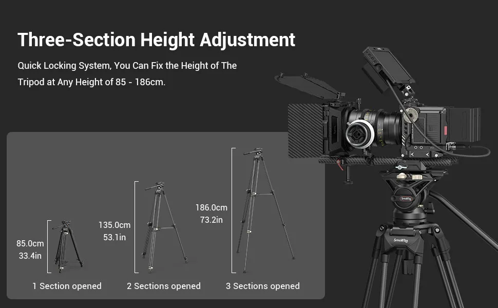Система видеоштатива SmallRig, 73 "сверхмощный штатив с поворотной головкой 360 градусов и быстроразъемной пластиной для DSLR камер 3751