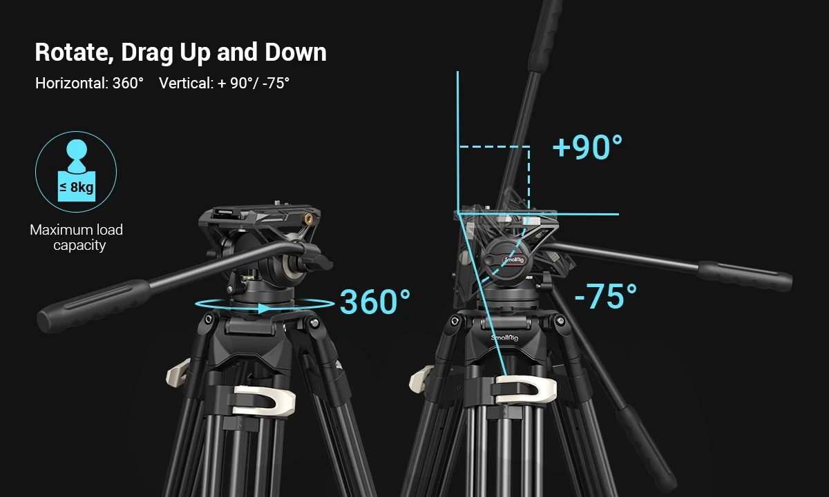 Сверхмощный штатив-Трипод с жидкой головкой SmallRig AD-01 3751Предназначен для видеосъемки. Он оснащен дизайном головки нового поколения, обновленной быстроразъемной пластиной со встроенным гаечным ключом, чтобы камера была быстро размещена. Благодаря подвижной головке, обеспечивающей быструю разборку и наклонную установку, установка камеры составляет менее 1 секунды и фиксируется после регулировки спереди и сзади. Слот для головки имеет встроенные винтовые отверстия; Основание чаши поставляется со скрытыми резьбовыми отверстиями 1/4 ''-20 для крепления аксессуара. Встроенная система демпфирования и балансировки позволяет вращать 360 ° по горизонтали и + 90 °/-75 ° по вертикали и удерживать оборудование до 8 кг. 3/8 "-16 резьбовых отверстий в головном основании поддерживают большинство штативов, рук, слайдов и других аксессуаров с 3/8"-16 винтами. Этот штатив со встроенным пузырьковым уровнем работает с базой чаши диаметром 75 мм для выравнивания и легкого управления уровнем кадра. Он включает в себя 3-секционный расширитель для удовлетворения различных требований по высоте в внутренних и наружных сценариях; И удобный быстросъемный флип-замок. Специальная сумка защищает штатив и позволяет легко носить с собой все, что вы хотите создать.