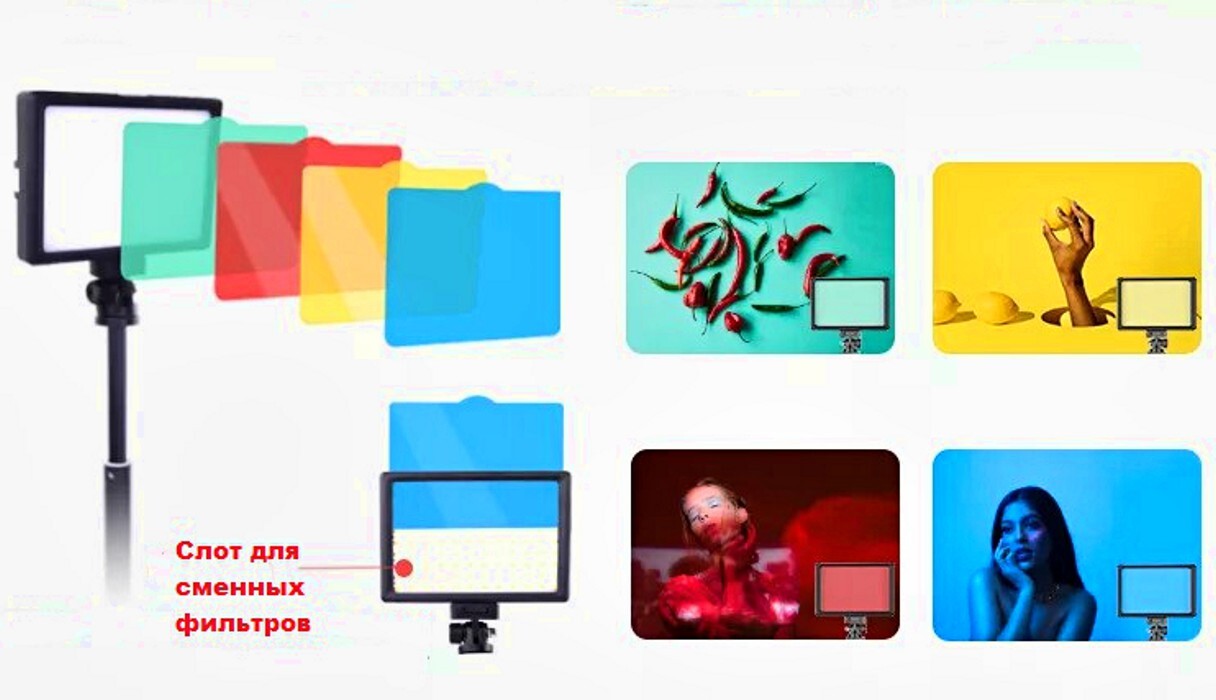 Описание: Видеосвет RGB-F120 - это небольшой настольный вариант для освещения, и с ним все намного проще. Видеосвет хорошо подходит тем, кто снимает блоги в разных локациях и в разное время суток. Также подходить тату мастерам, визажистам, косметологам и другим бьюти сферам. Видеосвет является ярким источником света к тому же очень компактным.  Из-за компактности видеосвет может быть всегда под рукой. Его легко можно взять с собой положив в сумку.