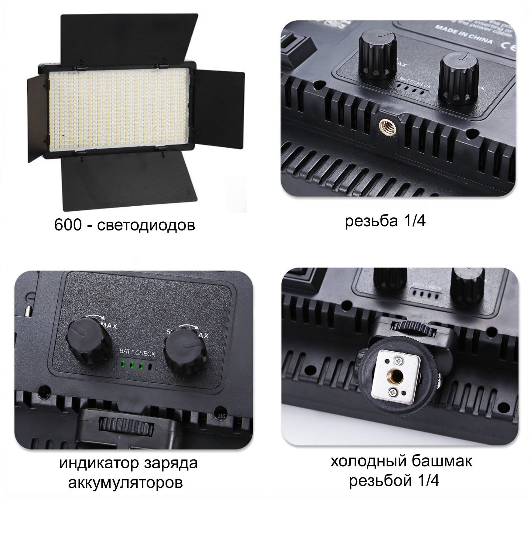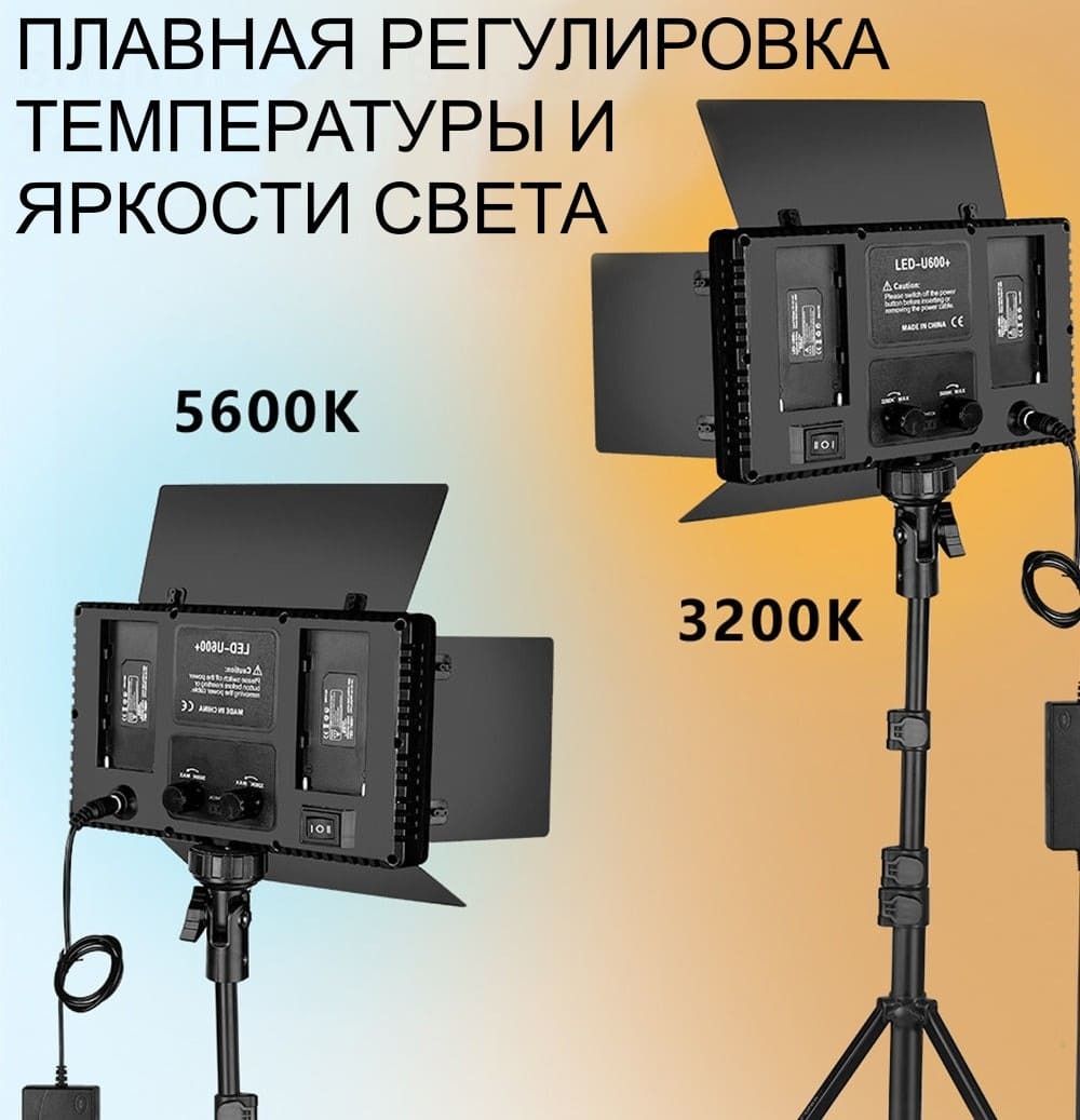 Описание: Видеосвет U600 это профессиональный свет для фотостудии. Хорошее освещение залог успеха не только для фотографов, но и для тех, кто снимает видео. Световая панель подходит тем, кто снимает в разных локациях и в разное время суток, Светодиодный осветитель можно использовать как основной свет, а можно применять для съемки видео на ходу. Также подходит тату мастерам, визажистам, косметологам и другим бьюти сферам. Светодиодная панель является ярким источником света к тому же очень компактным. Из-за компактности видеосвет может быть всегда под рукой. Его легко можно взять с собой положив в сумку. LED-панель обеспечивает постоянное освещение, алюминиевые шторки помогут настроить поток света, а диммеры плавно настроят яркость и цветовую температуру. В благодарность за покупку мы дарим настольный штатив рукоятку.