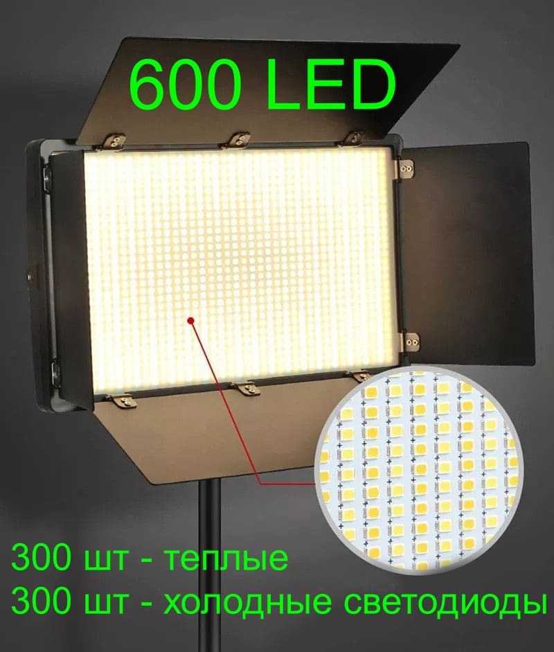 Видеосвет LED-U600 светодиодная панель для фото и видео съемки + подарок настольный штатив - рукоятка Светодиодная панель с настольным штативом