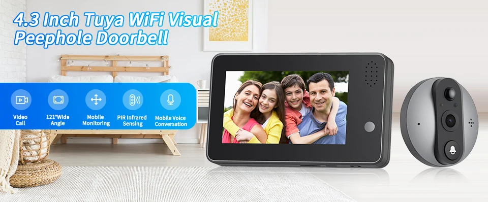 Видеозвонок Awapow 4,3 дюйма с Wi-Fi и функцией ночного видения, 1080P