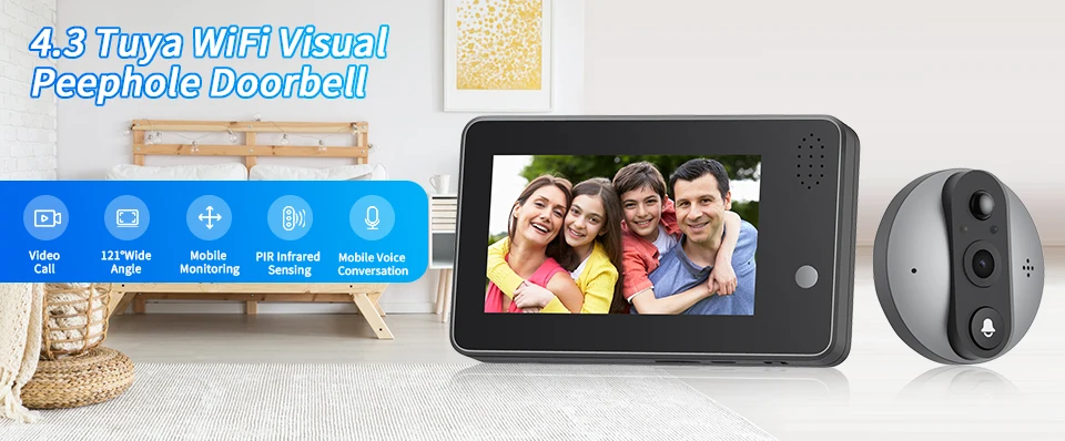 WSDCAM 4,3-дюймовый умный Wi-Fi видео дверной звонок ночного видения Tuya глазок камера обнаружения человека дверной звонок Alexa Google Объявление