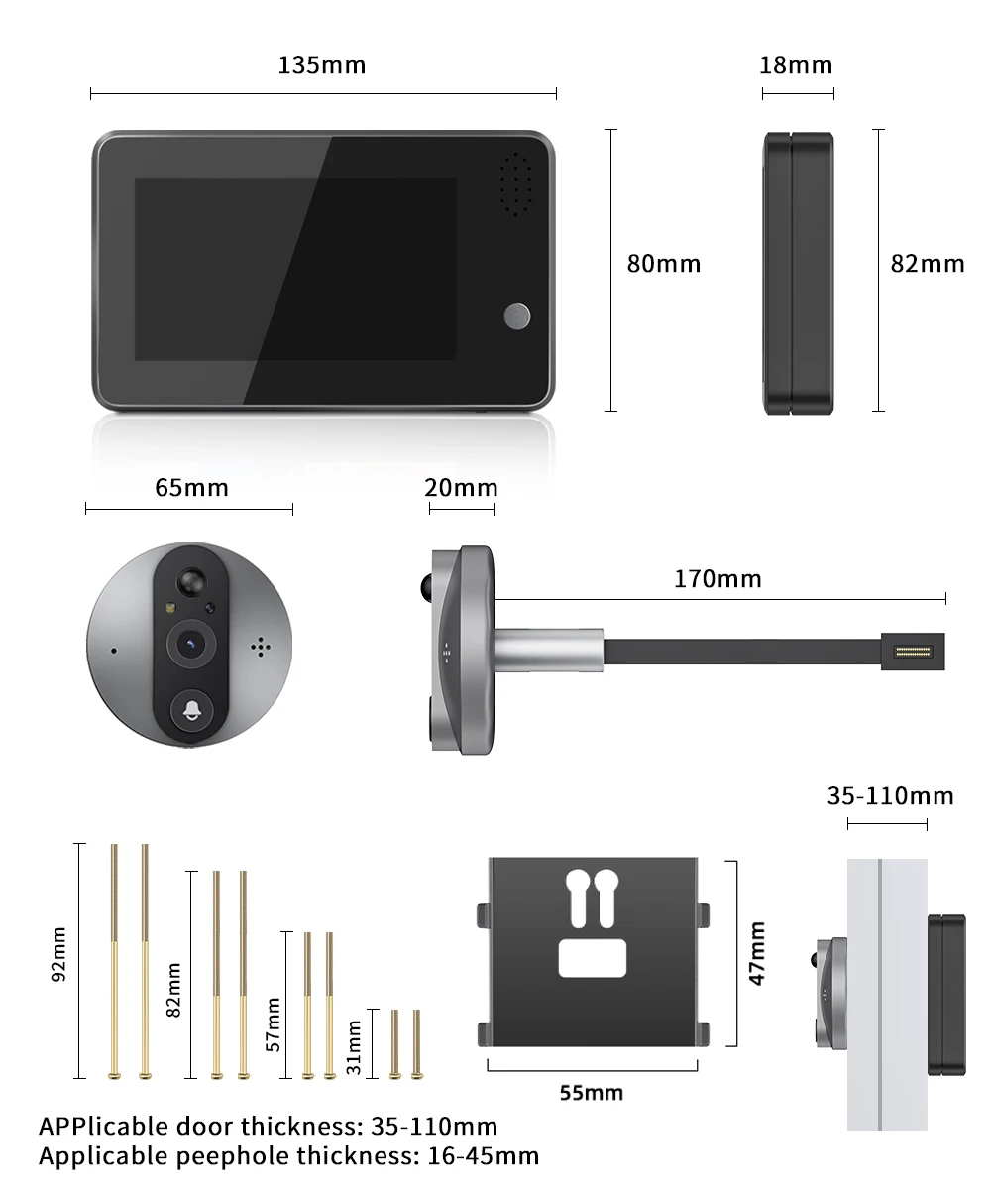 11. Толщина двери: 35-110 мм (Пожалуйста, измерьте толщину двери перед покупкой)