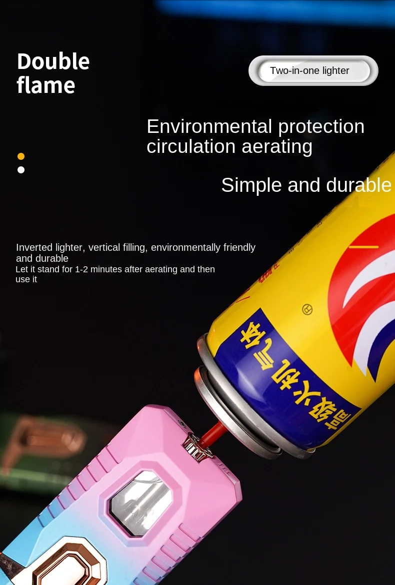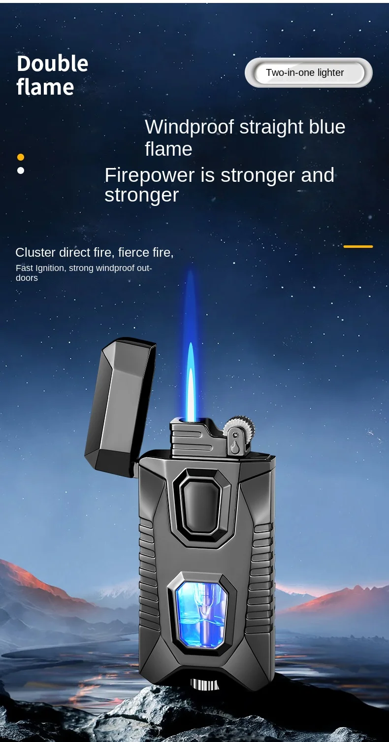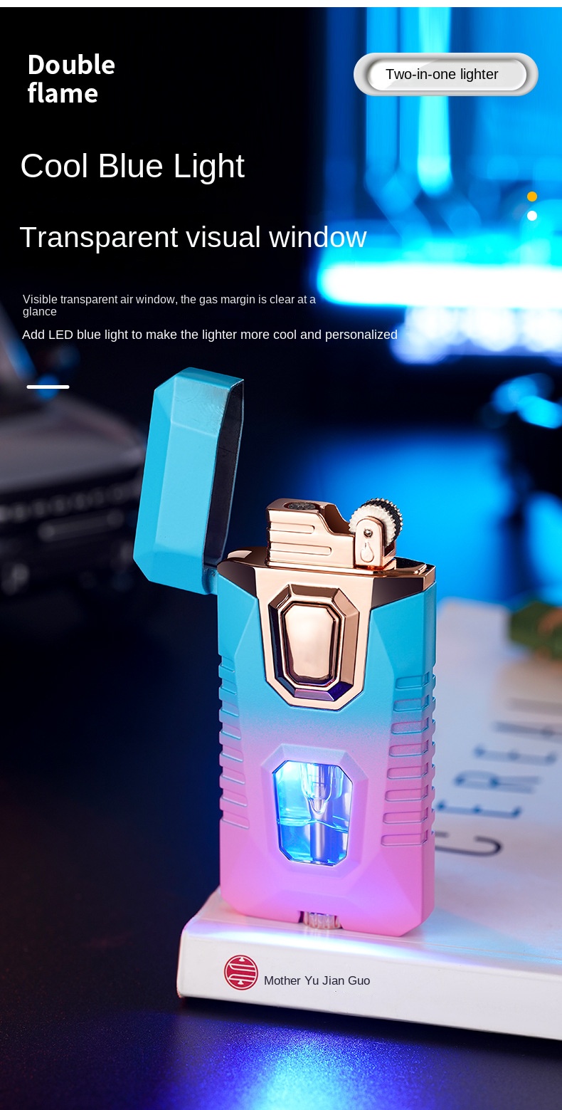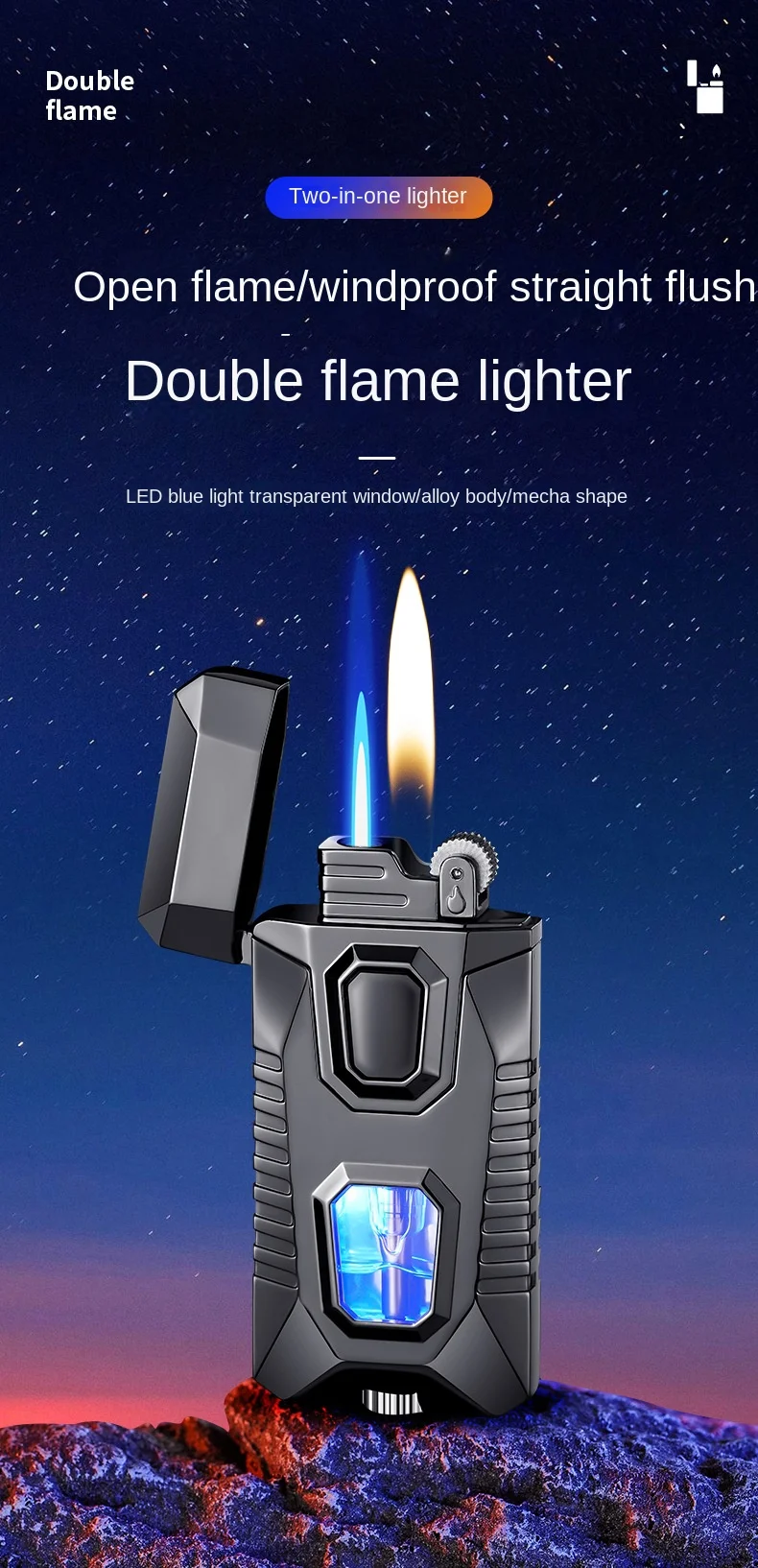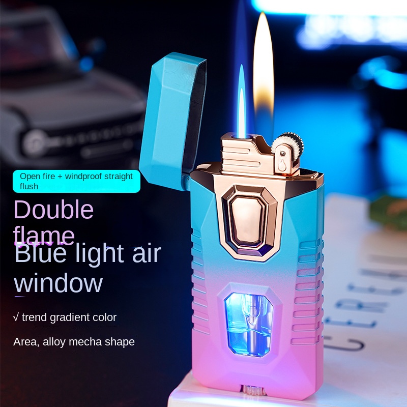 Видимая газовая зажигалка Металлическая портативная ветрозащитная необычная Зажигалка для сигарет Бутановая газовая зажигалка Два типа пламени