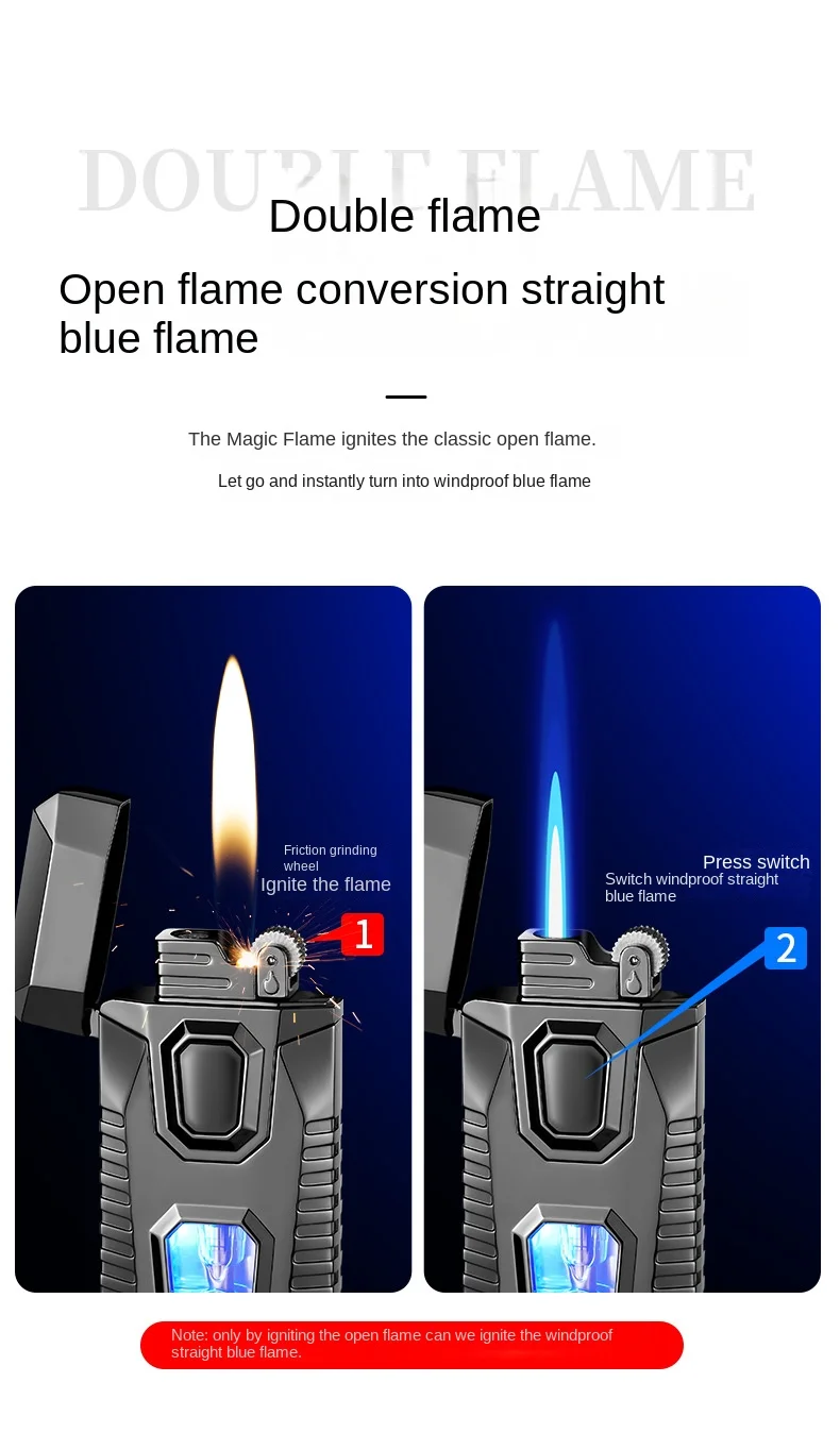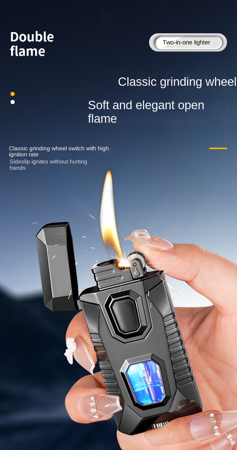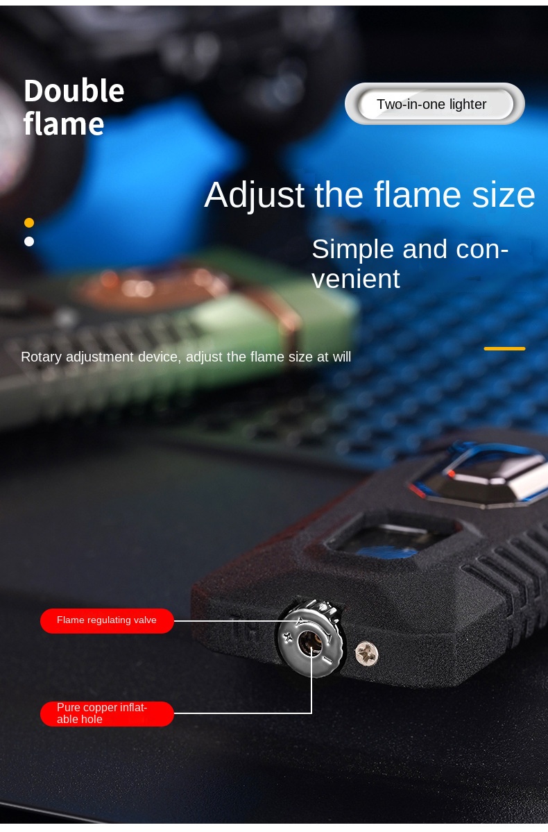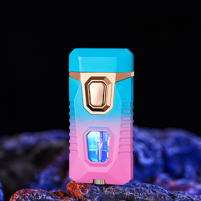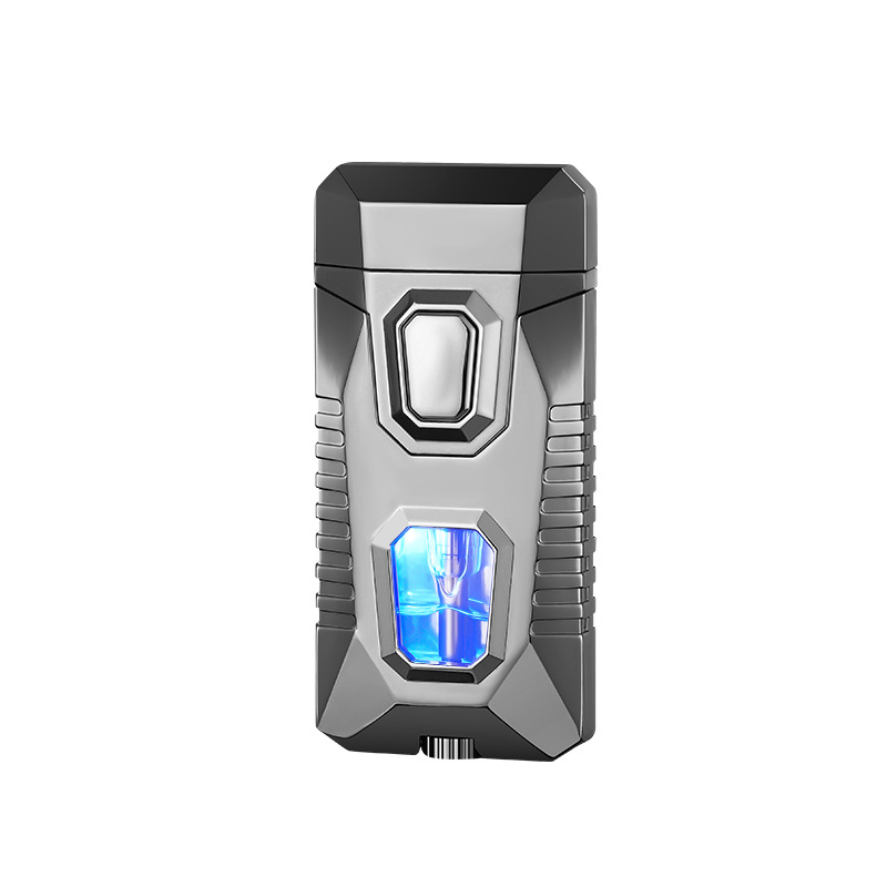 Видимая газовая зажигалка Металлическая портативная ветрозащитная необычная Зажигалка для сигарет Бутановая газовая зажигалка Два типа пламени
