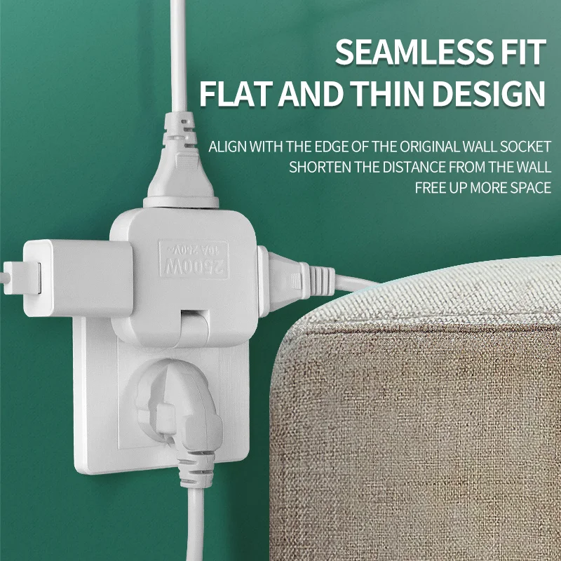 1 [Ультратонкий и компактный] может быть подключен к различным 2-контактным розеткам в разных местах, что упрощает поворот с 1 на 3