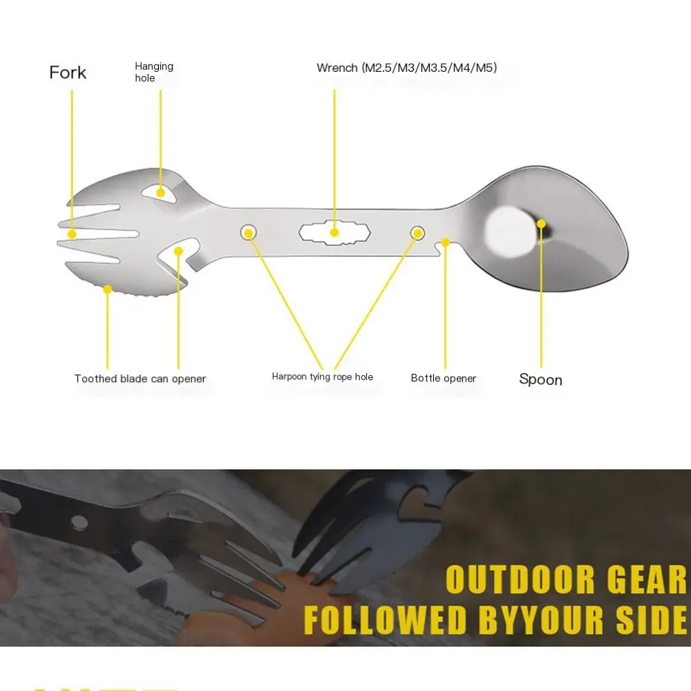 100% новый и высокое качество Цвет: черный/серебристый Материал: нержавеющая сталь Размер: 18*4 см Название: Многофункциональная Spork Функция: ложка, вилка, лезвие в форме зуба, открывалка для бутылок, отверстие для веревки гарпуна, консервный нож, гаечные ключи (M2, 5 / M3 / M3, 5 / M4 / M5), отверстие для подвешивания Подходит для сцен: пикники на открытом воздухе, кемпинг на открытом воздухе, Выживание вызов В Пакет включено: 1 шт. Многофункциональный Spork Примечания: 1. Из-за различий в мониторе и световом эффекте фактический цвет элемента может немного отличаться от цвета, показанного на фотографиях. Спасибо тебе! 2. Возможны отклонения в 1-3 см из-за ручного измерения.