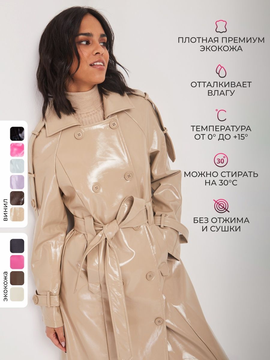 Описание: РЕКОМЕНДУЕМ отпарить плащ и дать ему отвисеться, так как при транспортировке он мнется. Как разгладить тренчкот: 1. Перед отпариванием тренч нужно повесить на плечики, застегнуть пуговицы, отвернуть воротник и манжеты, расправить внутренние карманы. 2. На расстоянии в 10–15 см «пройтись» по проблемным местам, нажимая кнопку выброса пара. 3. Дать плащу полностью остыть и высохнуть, желательно – с небольшим отягощением по низу изделия. 4. Также плащ можно постирать в стиральной машине на режиме деликатной стирки не более 30 градусов, без отжима и сушки. Тренч женский - основа базового гардероба современной девушки, а также кожаный плащ черный в стиле 90-е - тренд сезона. Пальто оверсайз поможет создать невероятный образ к 8 марта. Тренч подойдет на любой случай жизни. Ваша рука всегда потянется именно к плащу из всех вариантов одежды, потому что плащ женский выглядит актуально, стильно, при этом плащ женский осень защитит от дождя и ветра. А кожаный плащ сделает это еще лучше, потому что эко кожа не пропускает холод, поэтому можно считать, что плащ женский утепленный. Кожаный тренч также не покидает модных подиумов уже не одно десятилетие. А сейчас он особенно актуален, потому что 90-е одежда снова в моде. Тренчкот из экокожи универсален для всех. Плащ женский тренчкот длины миди сядет на девушку высокого, среднего и низкого роста. Демисезонный плащ, двубортный классический тренч на пуговицах. Женский плащ из искусственной кожи оснащен ремнем. Исполнен тренчкот в свободном крое тренч оверсайз, поэтому свободный плащ подойдёт на любую фигуру. Также его можно носить как плащ для беременных. Плащ утеплённый женский демисезонный выполнен с подкладом. Плащ кожанный без капюшона. Непромокаемая экокожа позволит использовать трэнч как плащ от дождя. Трендовая модель пальто также украшена акцентными деталями на плечах и карманах. Тренч кожаный прекрасно подойдет к любому вашему образу. Плащ кожаный можно надеть с платьями, юбками, джинсами, брюками. Кожаный плащ женский сочетается с любой обувью – и тяжелыми ботинками, и сапогами, и изящными туфлями. Плащ женский тренчкот уместно будет выглядеть по любому поводу. Тренчкот женский поможет вам составить стильные образы для социальных сетей, черный плащ органично дополнит ваши рабочие луки, тренчкот отлично подойдет для прогулки, плащ кожаный женский можно надеть в офис, университет и даже в театр или музей. Плащ кожзам - прекрасная, более модная альтернатива косухам. Также если вы являетесь фанатом фильма Матрица и образа Тринити, то плащ женский кожаный бренда Tiara dress - ваш лучший выбор. Плащ женский кожаный можно носить почти в любое время года. Плащь подойдет для весны, осени, холодного лета и теплой зимы – если вы наденете его с теплым свитером. Плащ женский длинный выгодно корректирует фигуру, делая вас визуально выше и стройнее. Кожаный плащ подойдет женщинам любого возраста. Женский плащ будет идеально смотреться как с контрастными образами, вечерними, так и с повседневными. Также вы всегда можете его использовать в стилизации 90-е одежда женская, сочетая с кожаными брюками. Плащ черный нужен любому гардеробу, но, если он у вас уже есть, вы всегда можете разнообразить луки кожаный тренчем других цветов - коричневый, розовый винил, черный винил. Тренчкоты и плащи женские всех этих цве