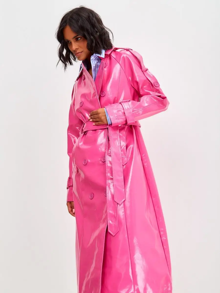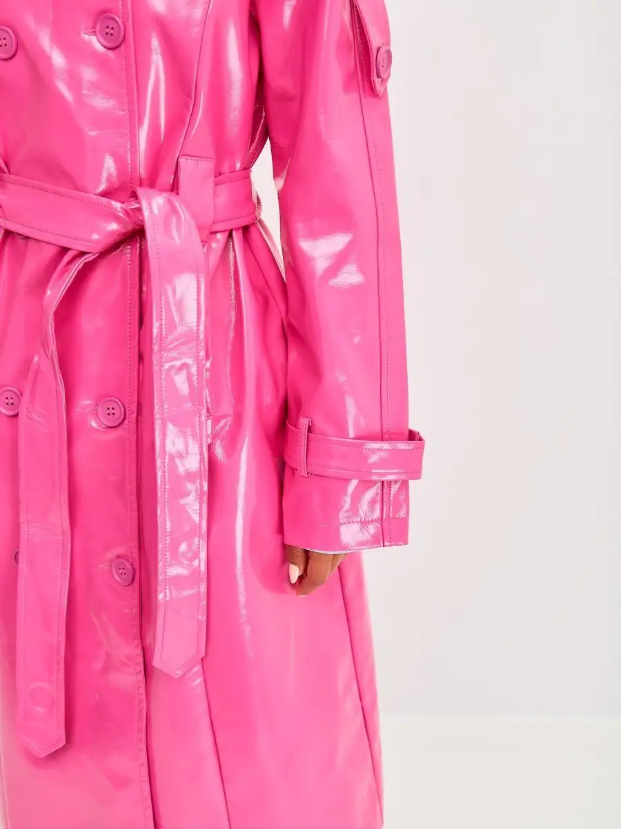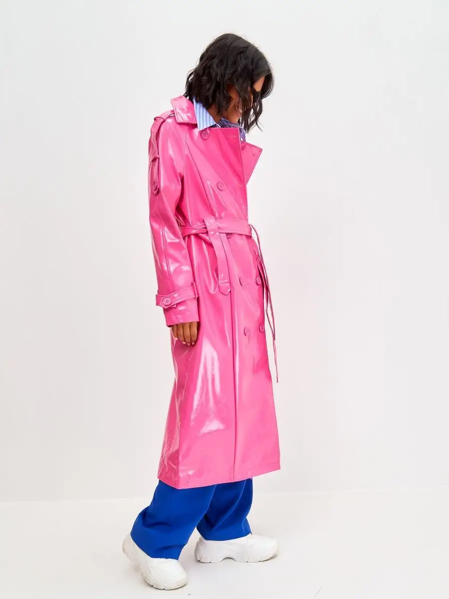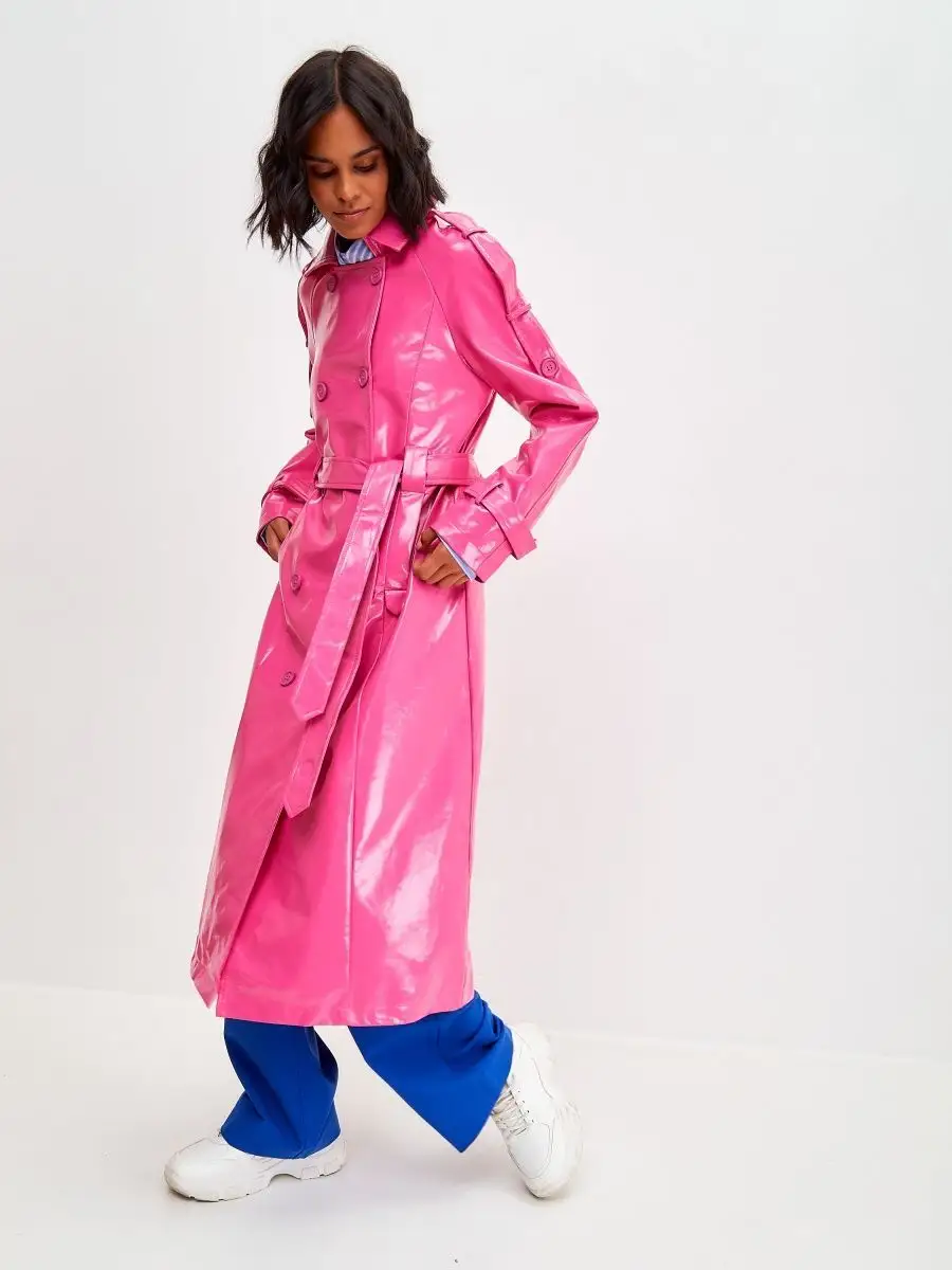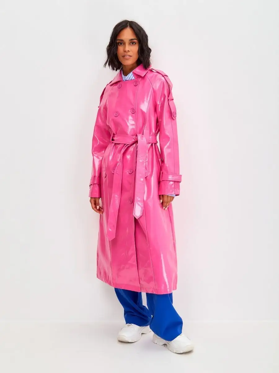 Виниловый плащ длинный тренч пальто весна 2023 барби