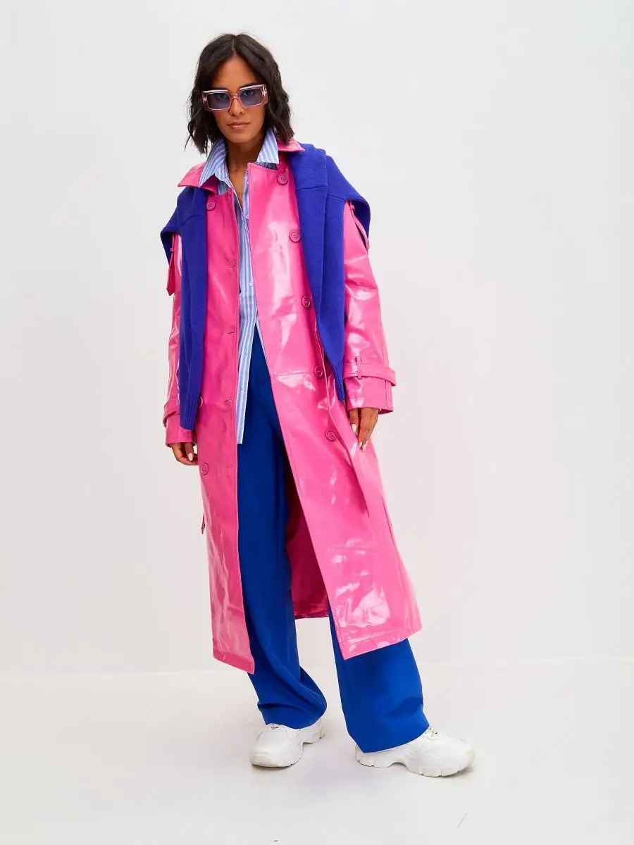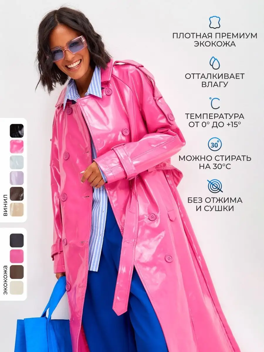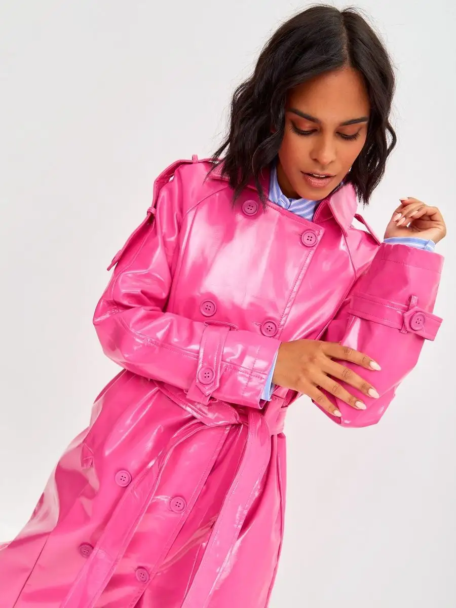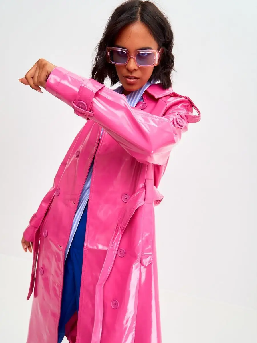 Виниловый плащ длинный тренч пальто весна 2023 барби