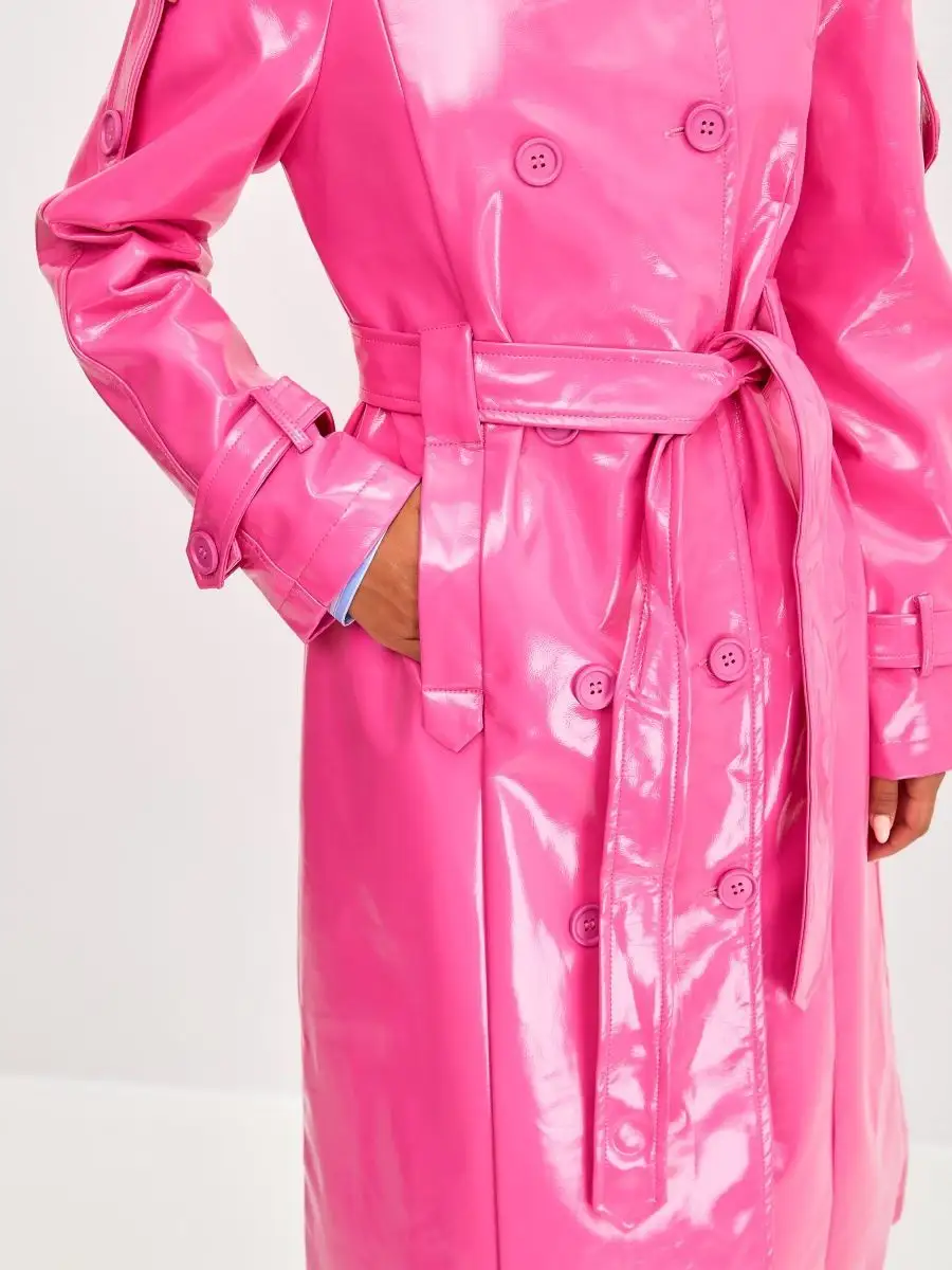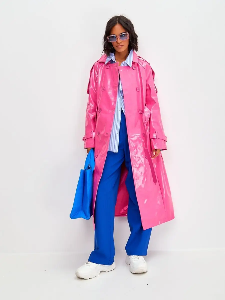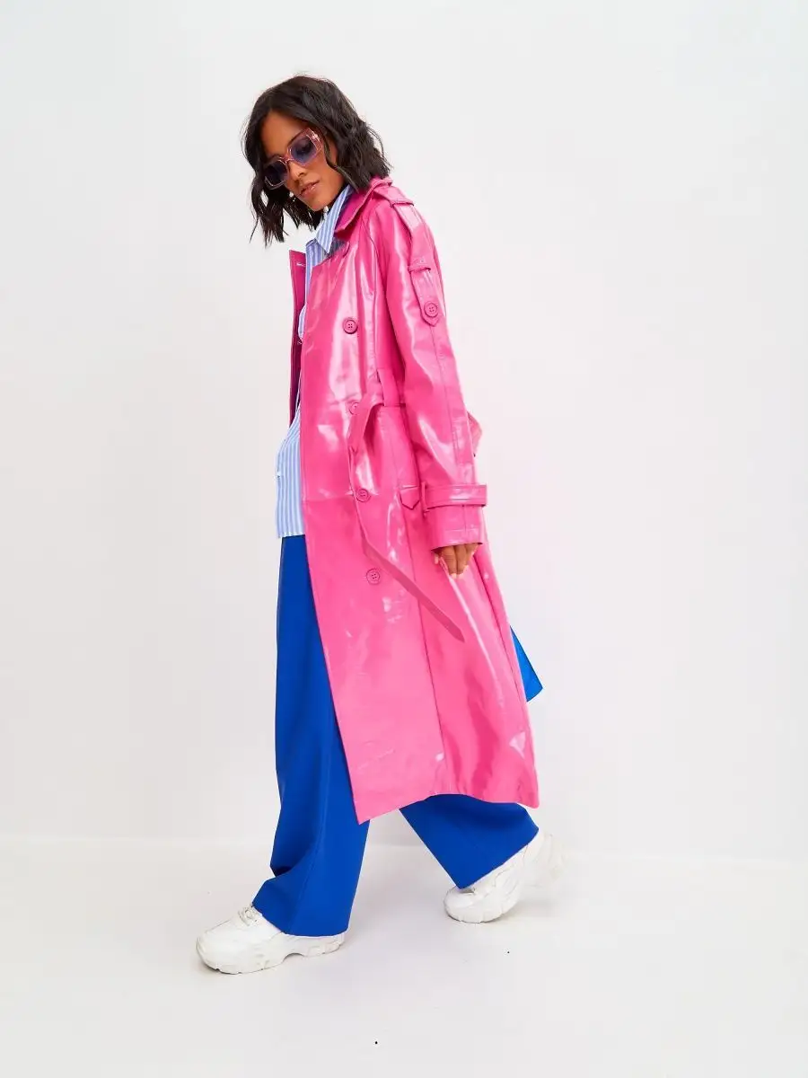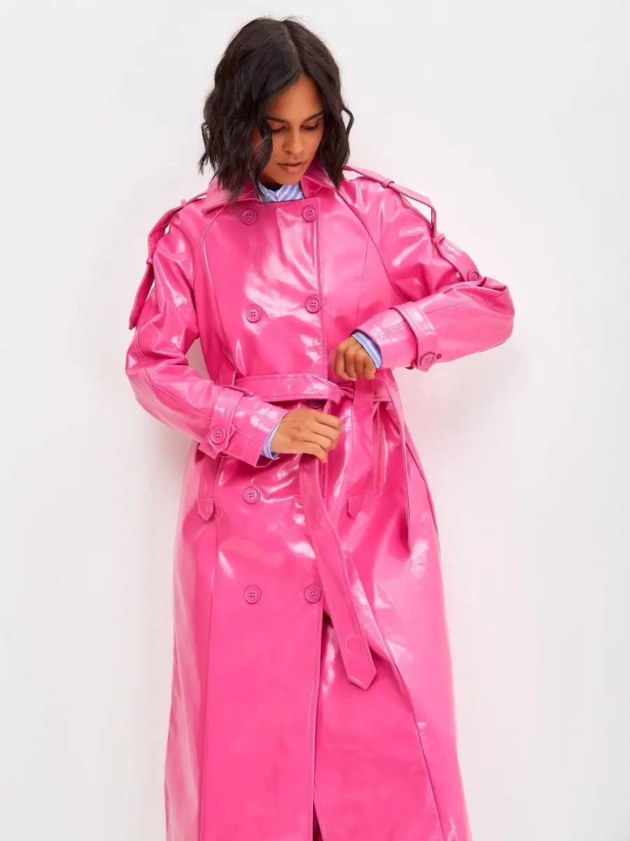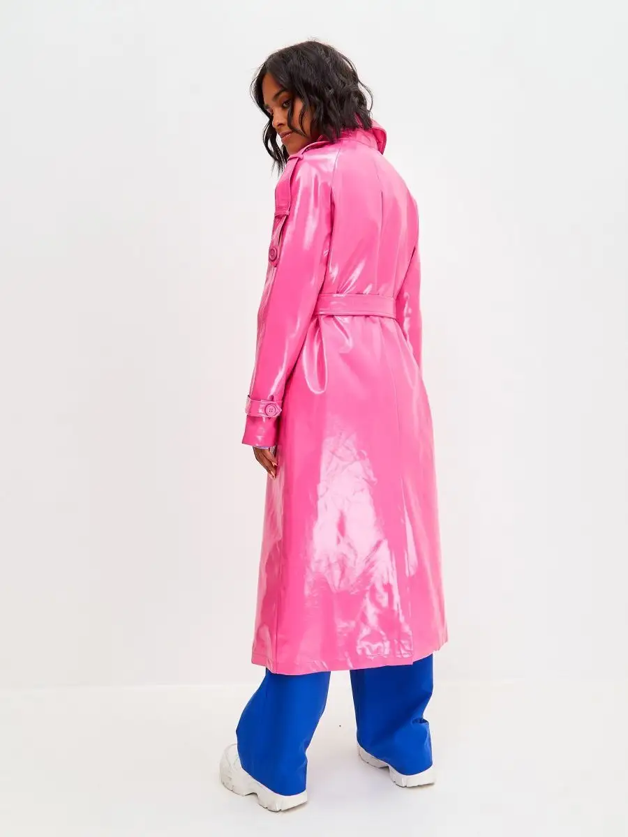 Виниловый плащ длинный тренч пальто весна 2023 барби