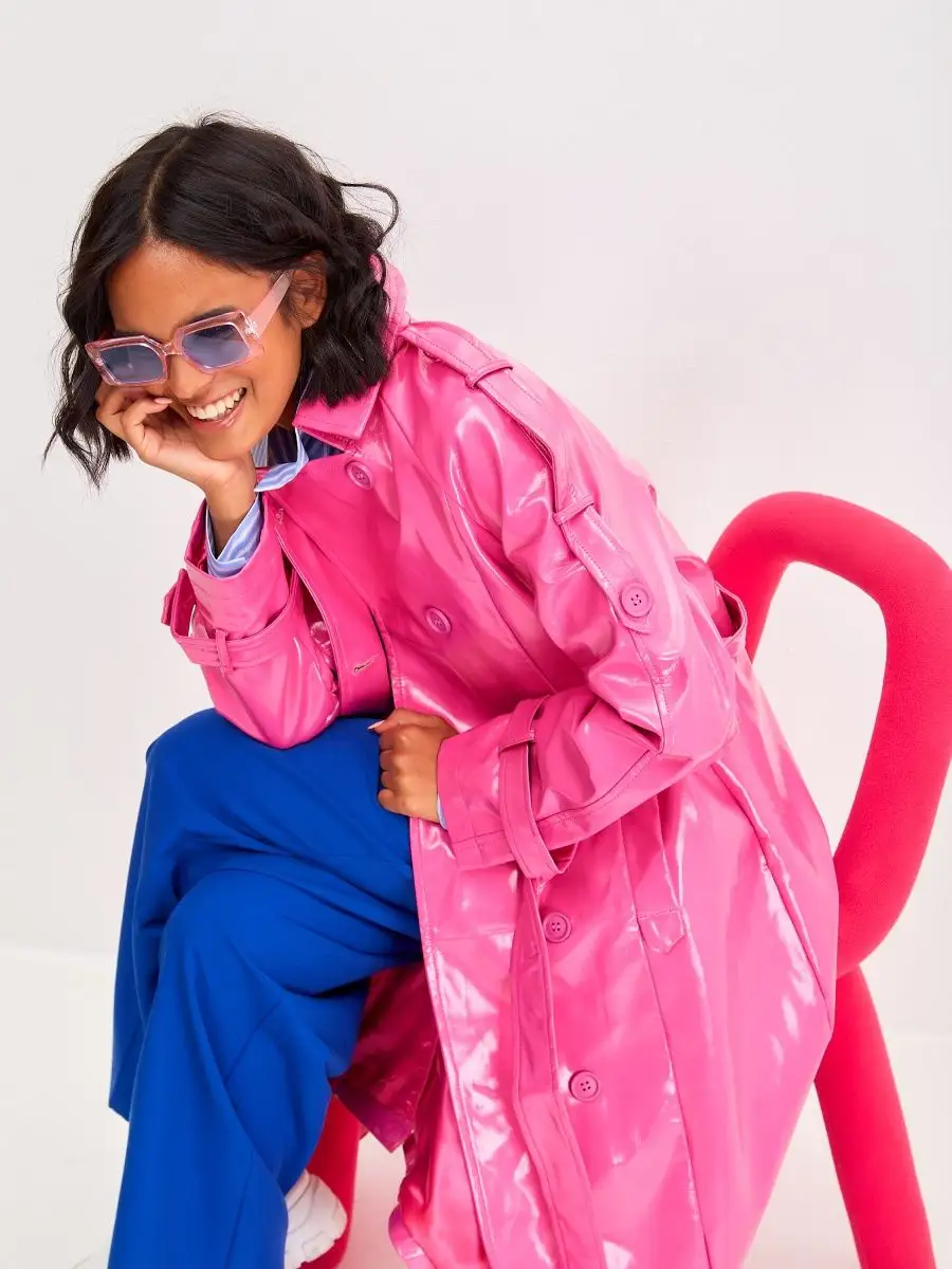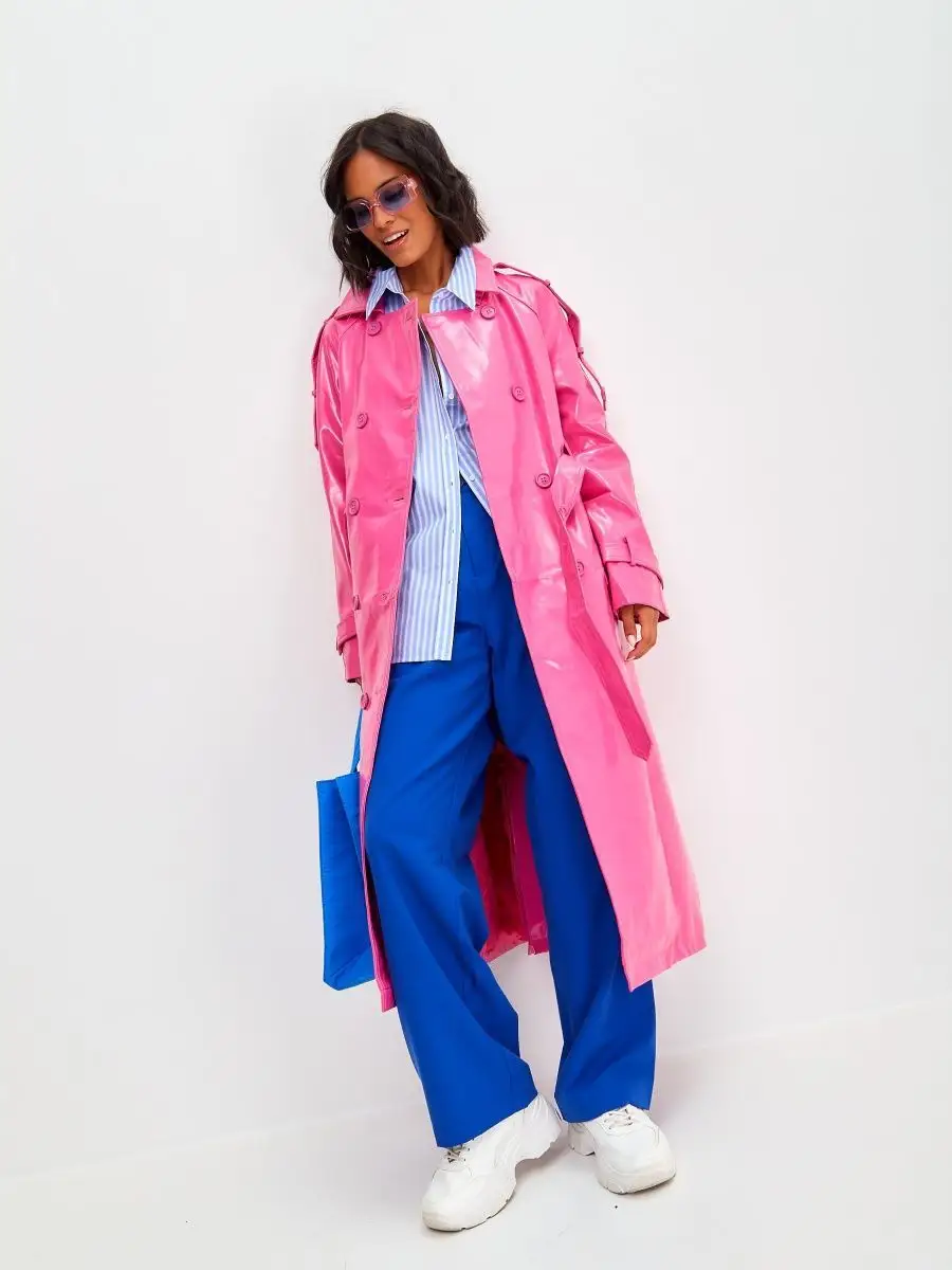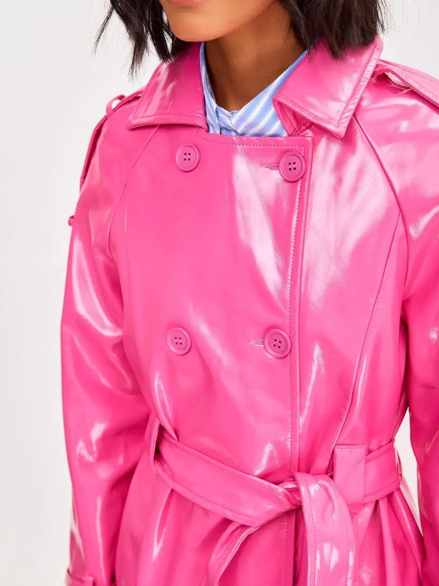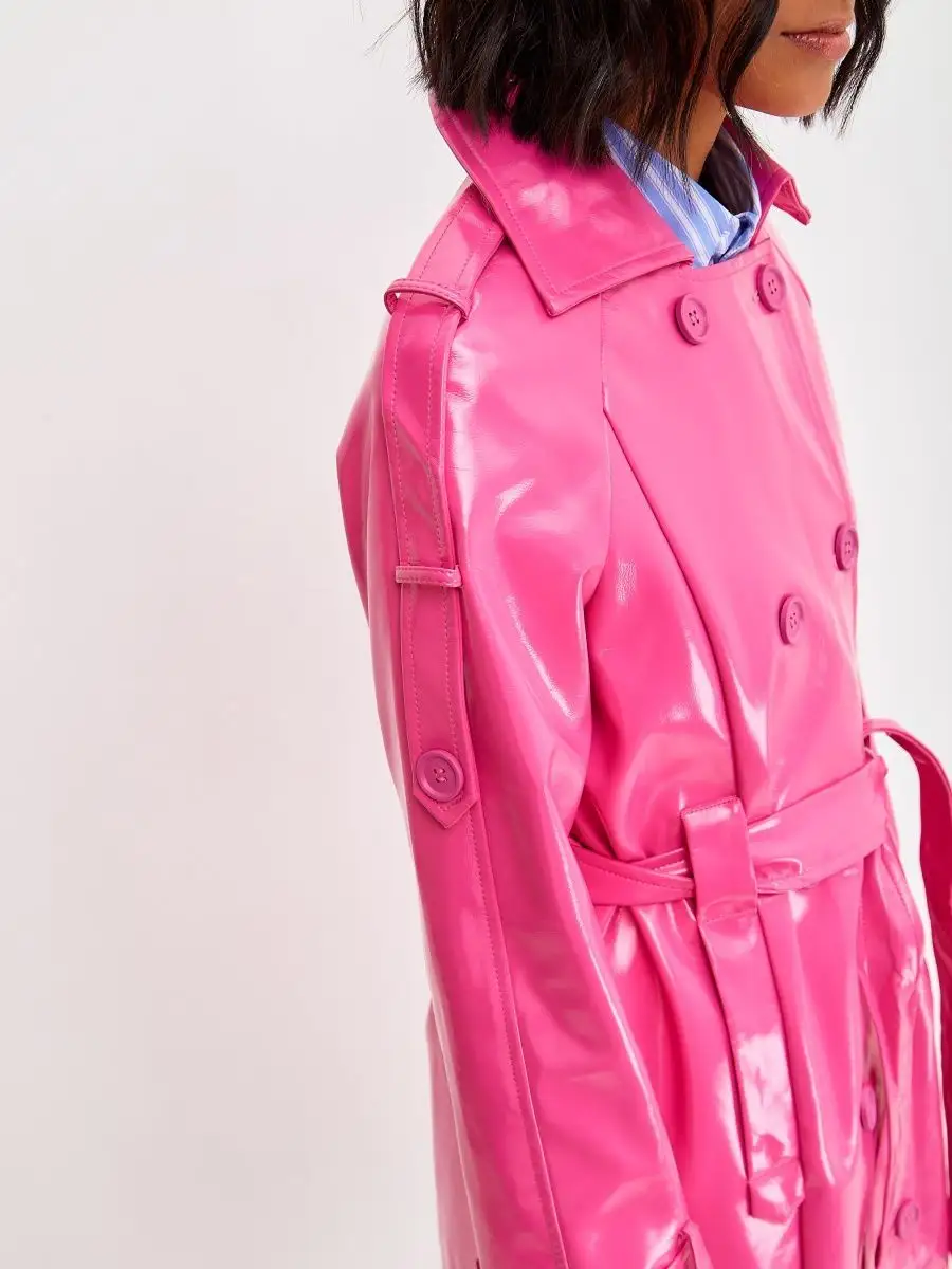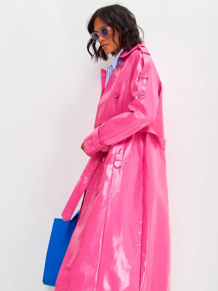 Виниловый плащ длинный тренч пальто весна 2023 барби