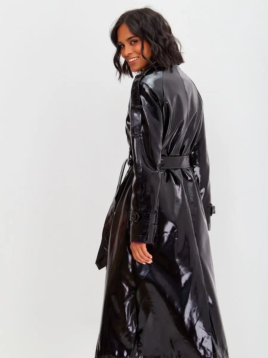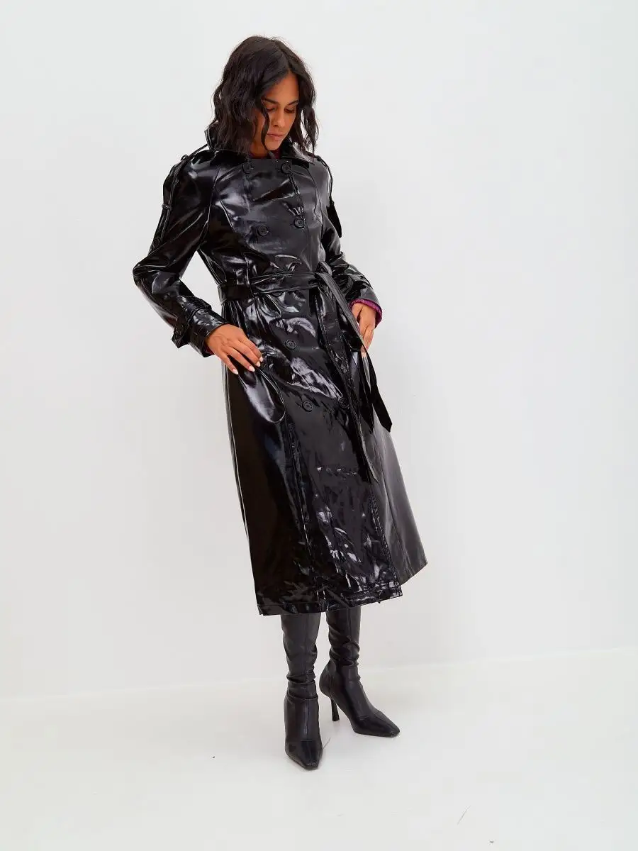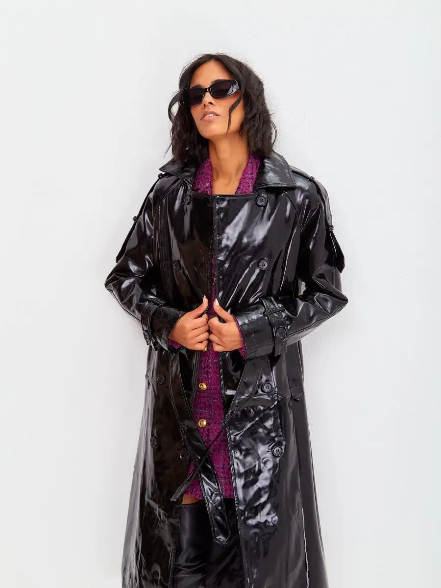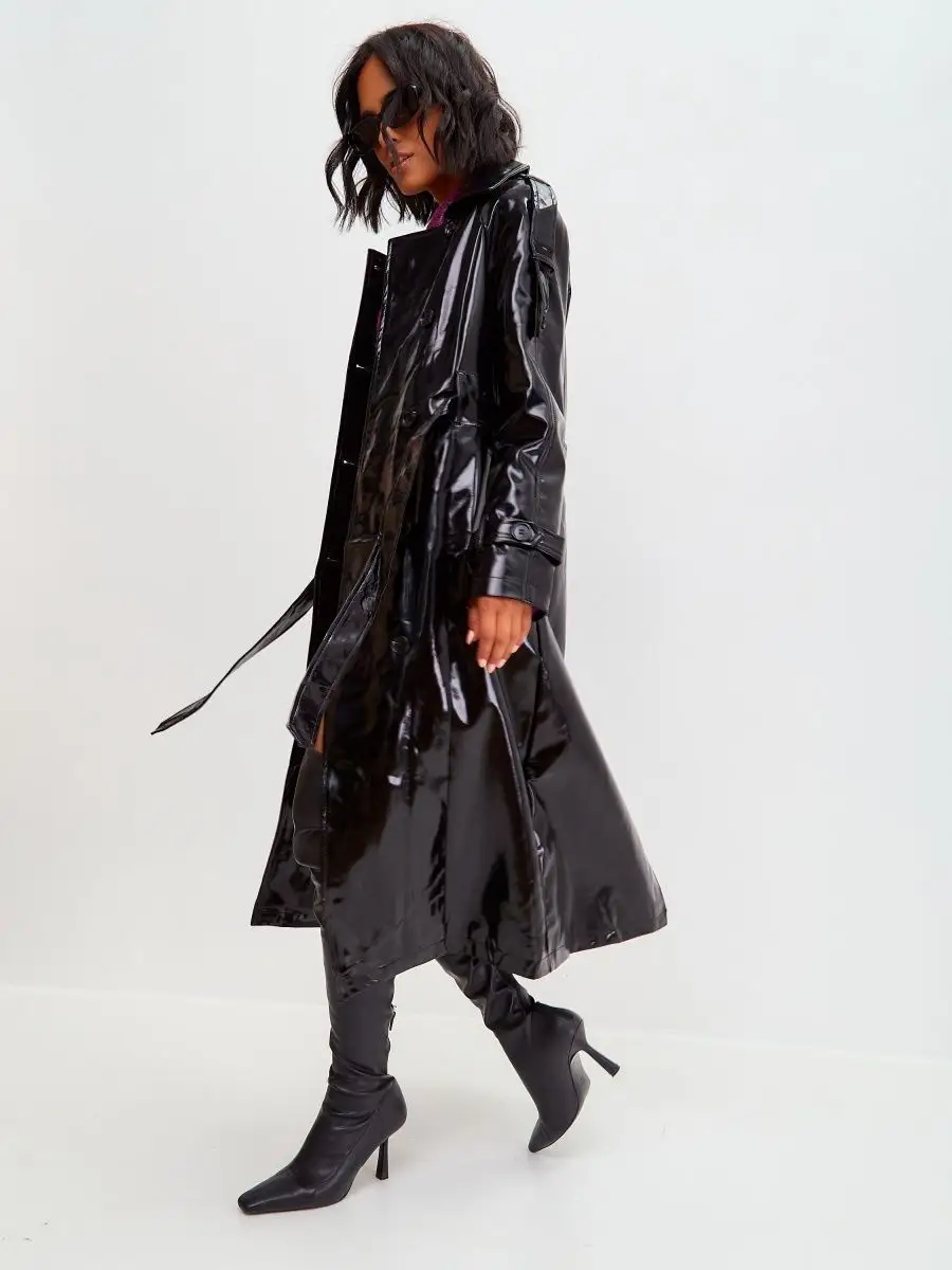 Виниловый плащ кожаный длинный тренч осенний 2023