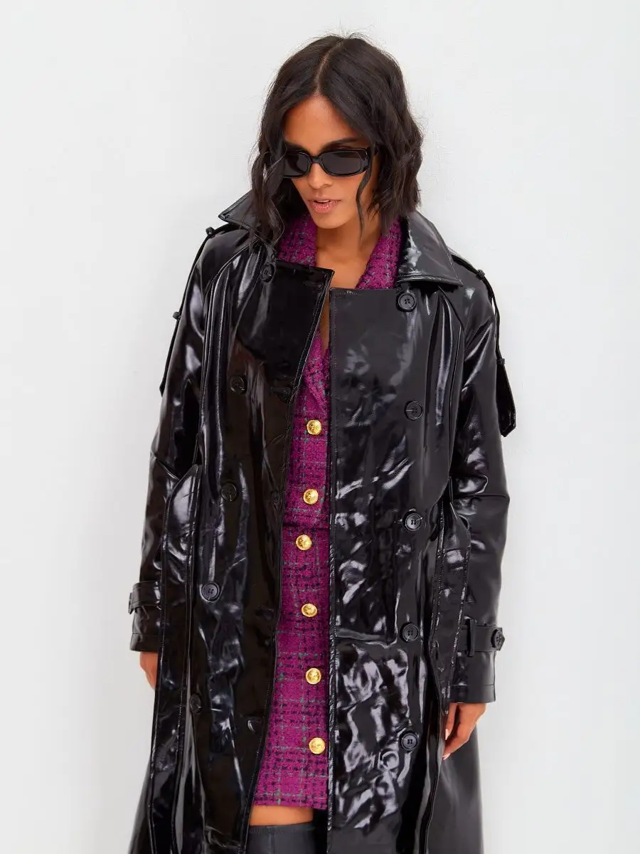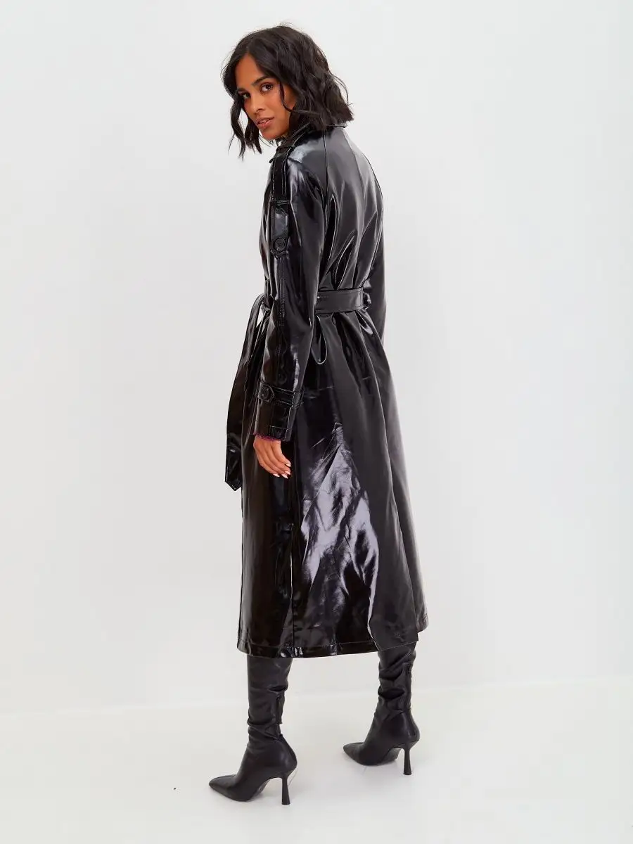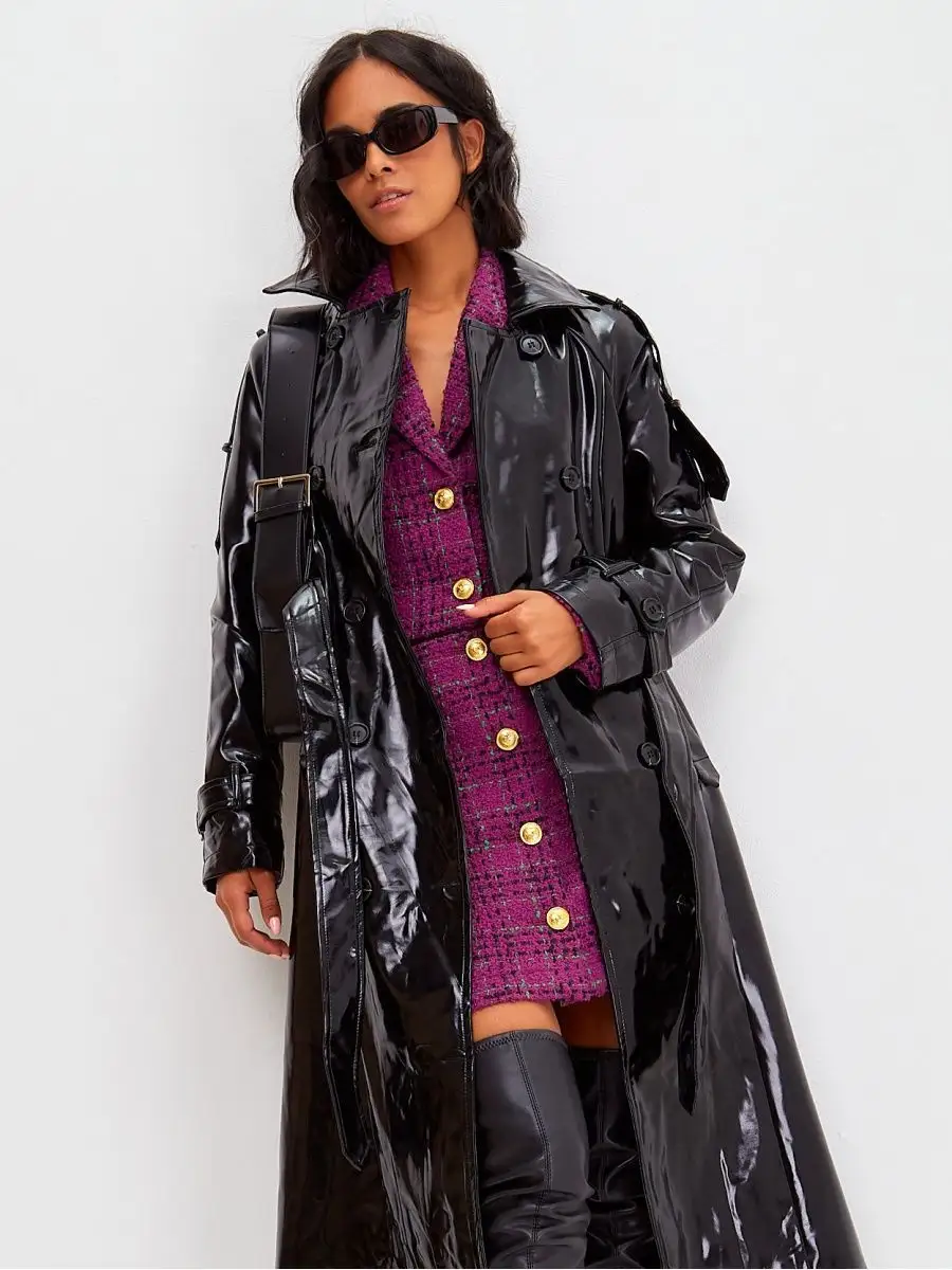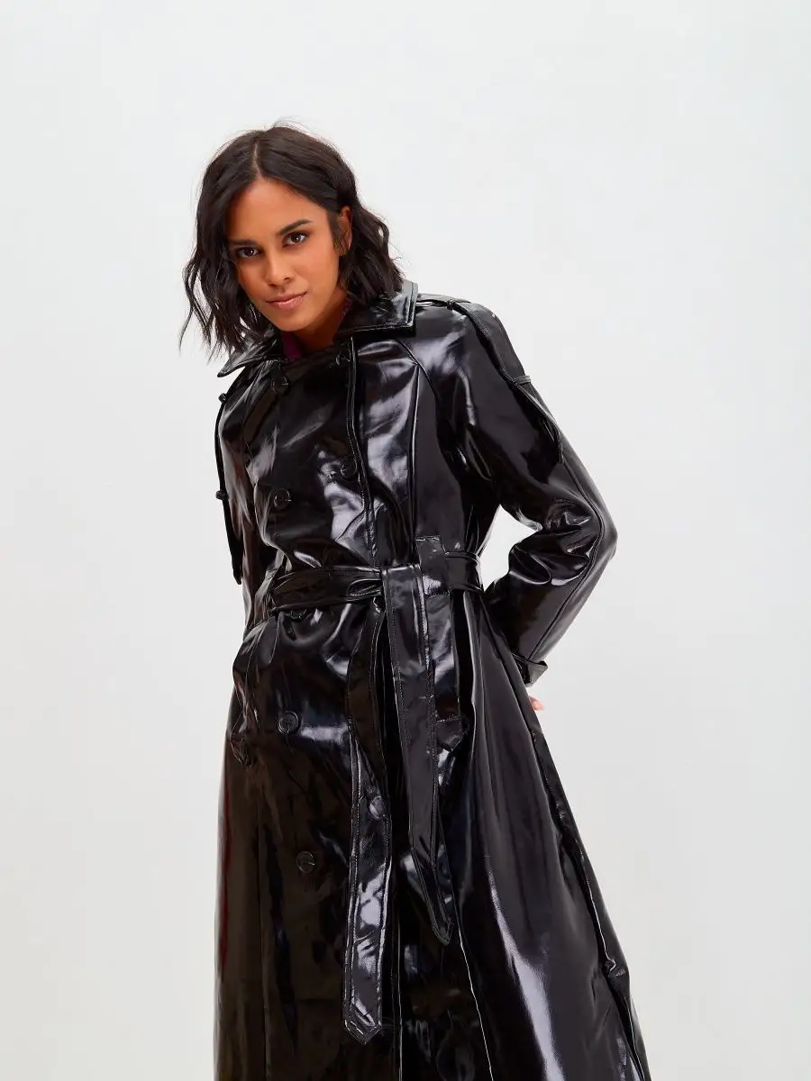 Виниловый плащ кожаный длинный тренч осенний 2023