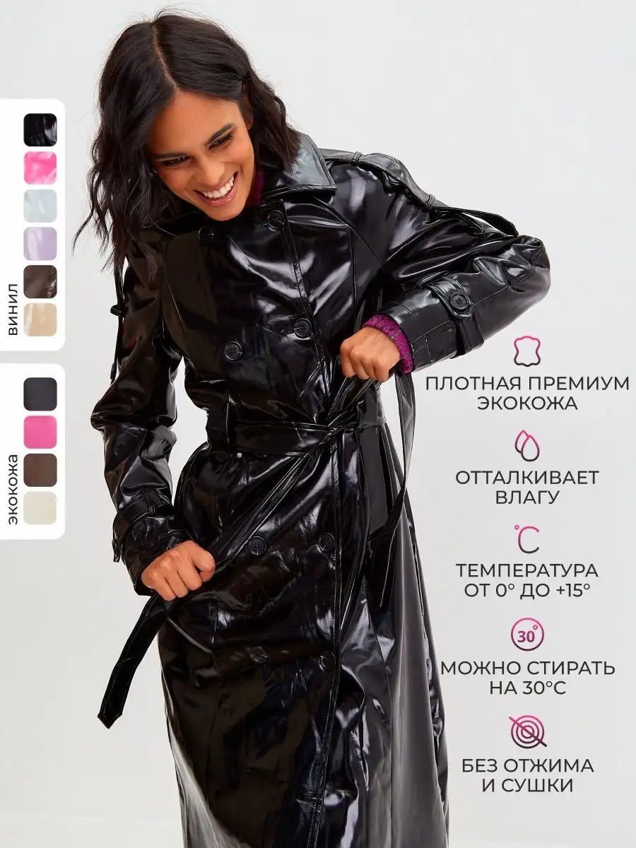 Описание: Тренч женский длины миди в свободном крое - основа базового гардероба, а также кожаный плащ демисезонный 90-е - тренд сезона. Пальто оверсайз на девушку высокого, среднего и низкого роста. Эко кожа не пропускает холод. Классический утеплённый на пуговицах не покидает подиумов уже не одно десятилетие. Также его можно носить беременным. Непромокаемая экокожа позволит использовать трэнч без капюшона от дождя. Трендовая модель также украшена акцентными деталями на плечах и карманах. Разнообразит ваш стиль для социальных сетей, украсит ваши рабочие луки, тренчкот длинный кожзам - для прогулки, офиса, университета и даже театра или музея - прекрасная, более актуальная альтернатива косухам. Также если вы являетесь фанатом фильма Матрица и образа Тринити - это ваш лучший выбор для весны, осени, холодного лета и теплой зимы – если со свитером. Выгодно корректирует фигуру, делая вас визуально выше и стройнее, универсален для женщин любого возраста. Черная верхняя одежда нужна всем, но, если она у вас уже есть, вы всегда можете добавить тренчи других цветов, они создают разное настроение. Большие размеры доступны к заказу в нашем бренде. Он прослужит вам не один год, оставаясь трендовым, будет выглядеть как новый, если своевременно удалять с него грязь влажной тряпкой и хранить в чехле. Если вы ищете интересный вариант, который будет служить вам вне времени - это он. Элегантный макинтош не оставит вас незамеченной.