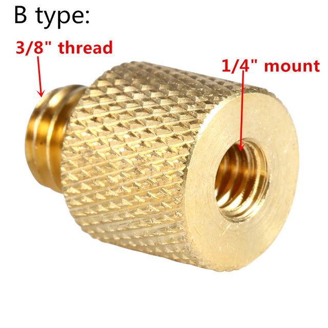 Золотой цвет 3/8 дюйма с внутренней резьбой на 1/4 дюйма с наружной резьбой для штатива, винтовой адаптер, латунный диаметр 16 мм для штатива, аксессуары для осветительной подставки для камеры