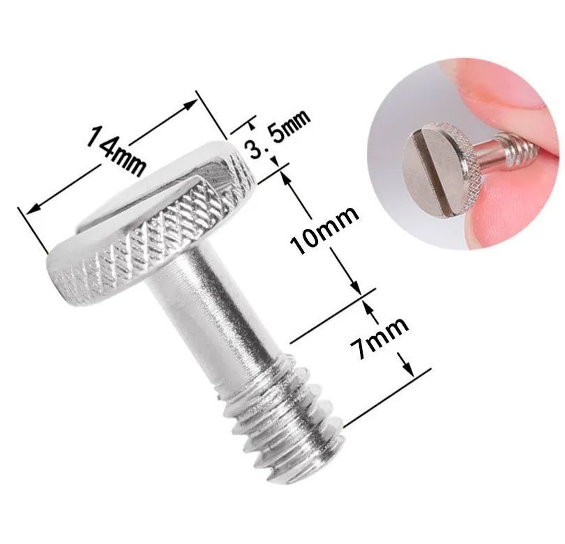 Описание: Широко используемая резьба 1/4 из нержавеющей стали может использоваться с моноподами, штативами, шариковыми головками, телескопами, быстроразъемными пластинами и т. д. Кольцо C помогает легко установить и отпустить винт, что удобно для установки и использования. Вращающееся c-кольцо из нержавеющей стали изготовлено из алюминиевого сплава. Прочный и стабильный.