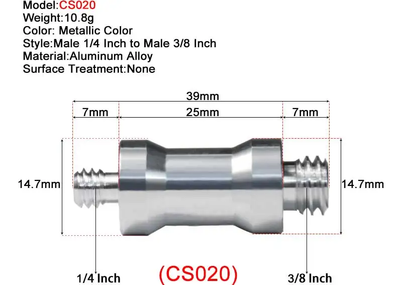 • CS020: материал-алюминиевый сплав; Стиль-мужской 1/4 дюйма-мужской 3/8 дюйма.