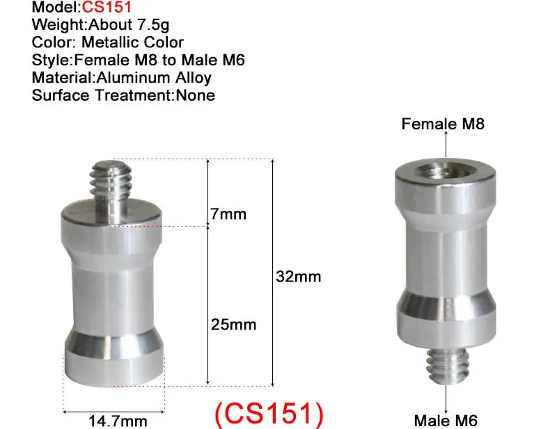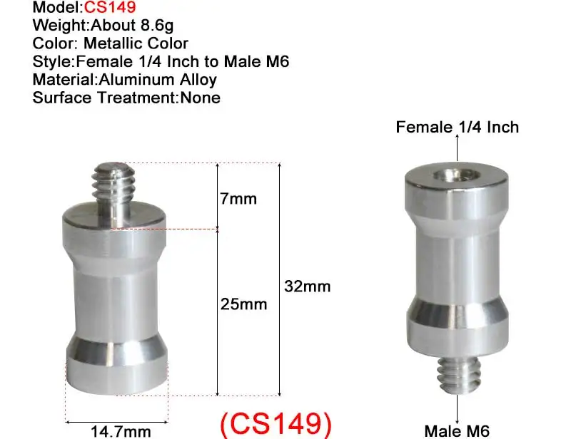 • CS149: материал-алюминиевый сплав; Стиль-Женский 1/4 дюйма-мужской M6.