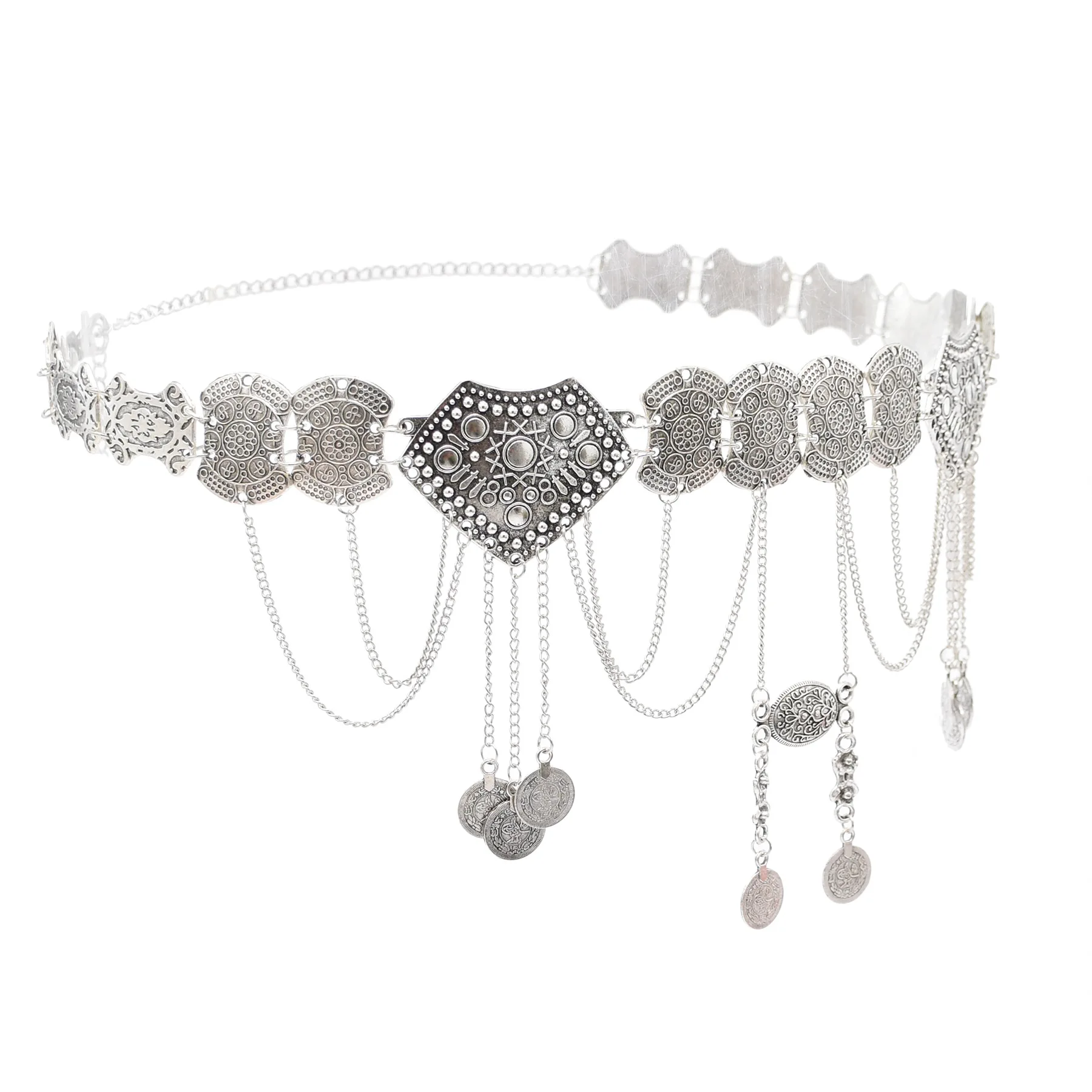 Fashion Vintage Gypsy Jewelry Silver Coin Tassel Waist Chain