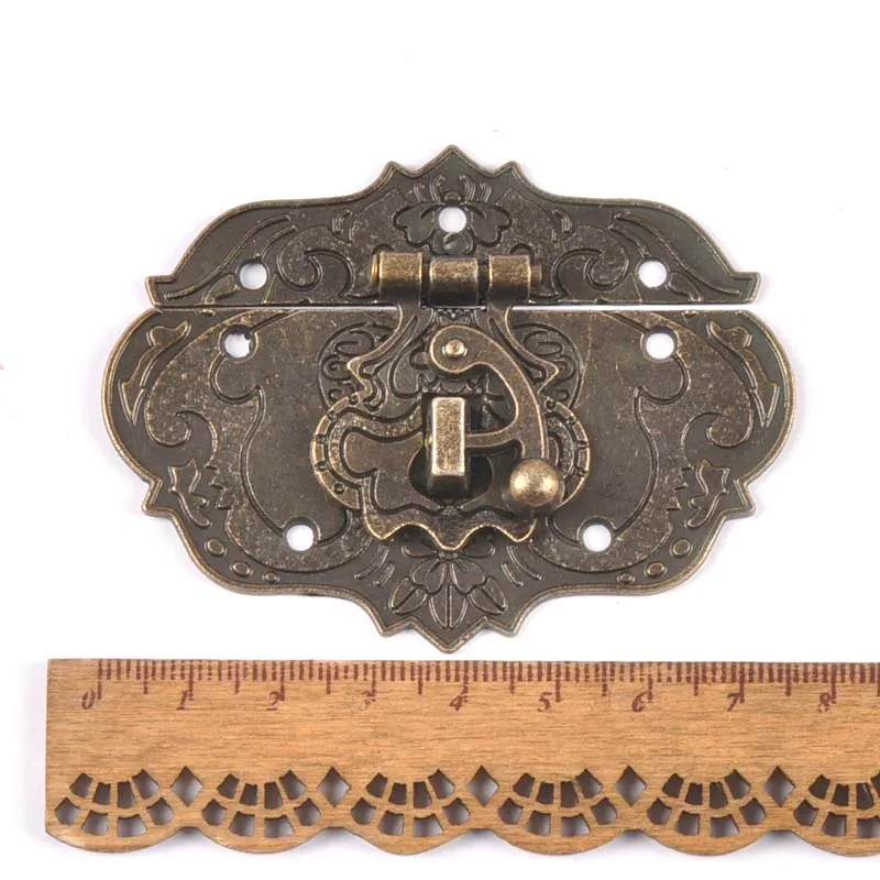 Винтажная латунная фурнитура с защелкой, декоративная шкатулка для украшений, фурнитура, деревянные шкатулки, мебельная пряжка, застежка-замок деревянный ящик Засов c2264
