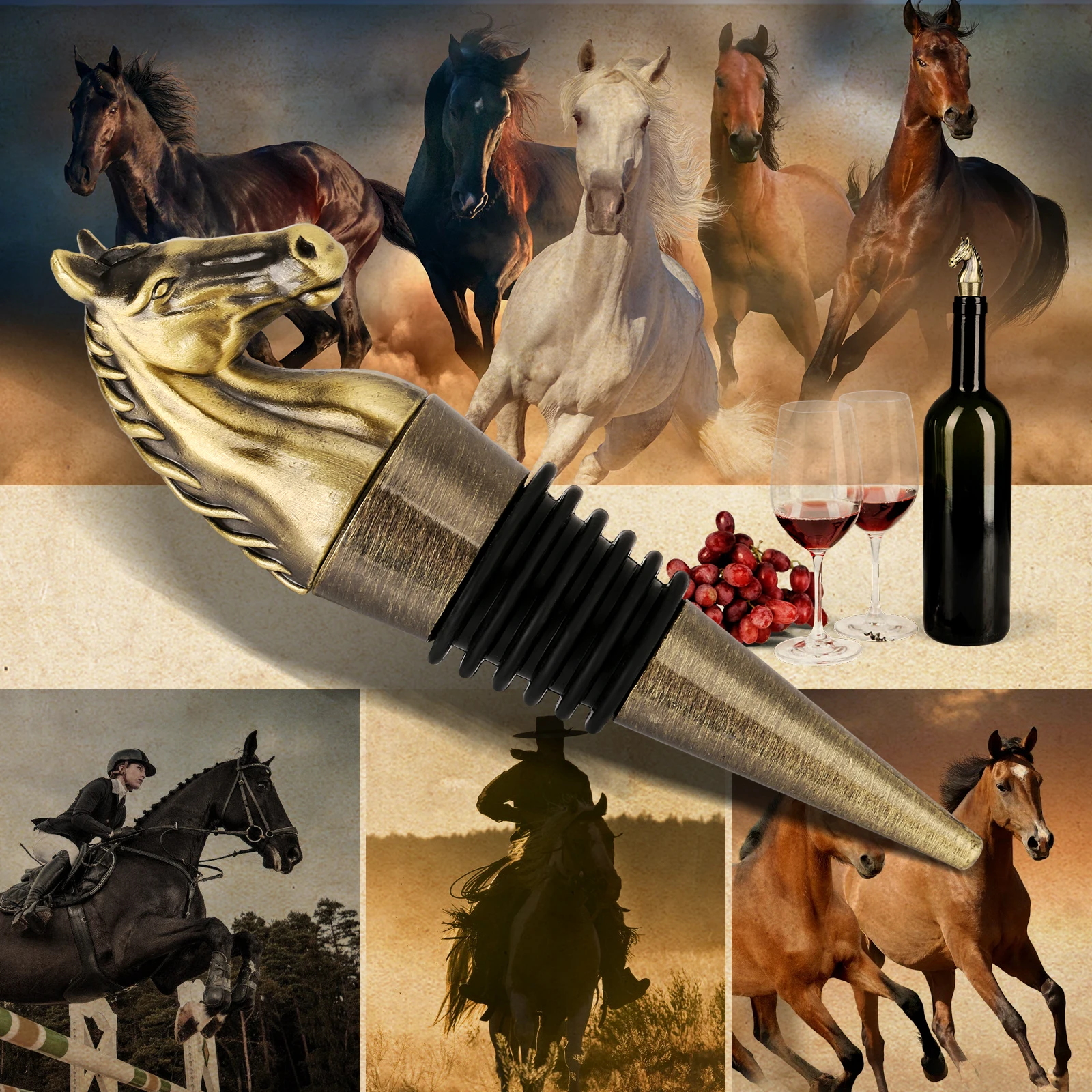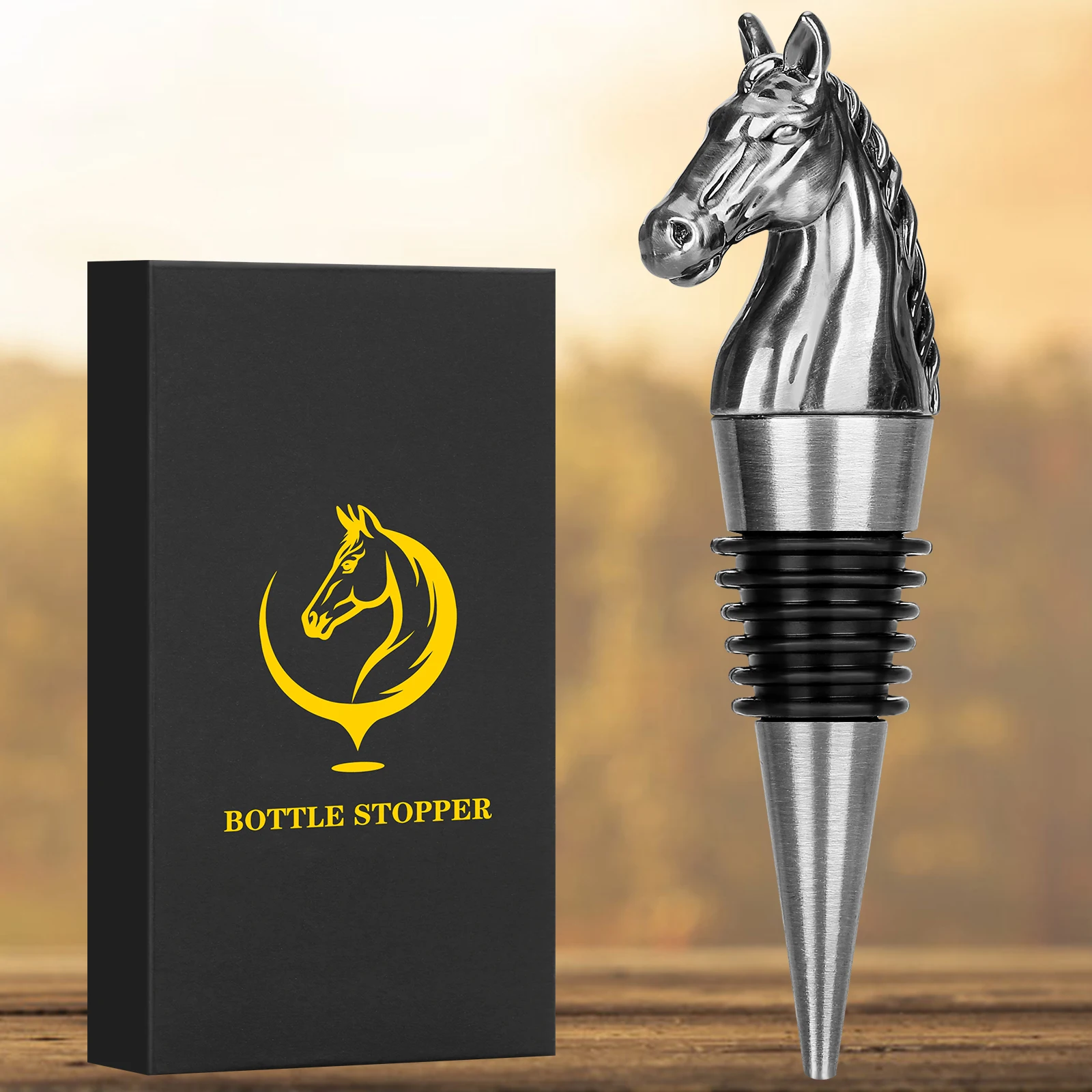 ВЫСОКОКАЧЕСТВЕННЫЙ МАТЕРИАЛ:Эта винная пробка изготовлена из прочного цинкового сплава и мягкого силикона, которые являются прочными и безопасными. Голова лошади из цинкового сплава изготовлена с реалистичными деталями и бронзового цвета. Силиконовое кольцо гибкое и герметичное, что обеспечивает плотное уплотнение ваших винных бутылок.